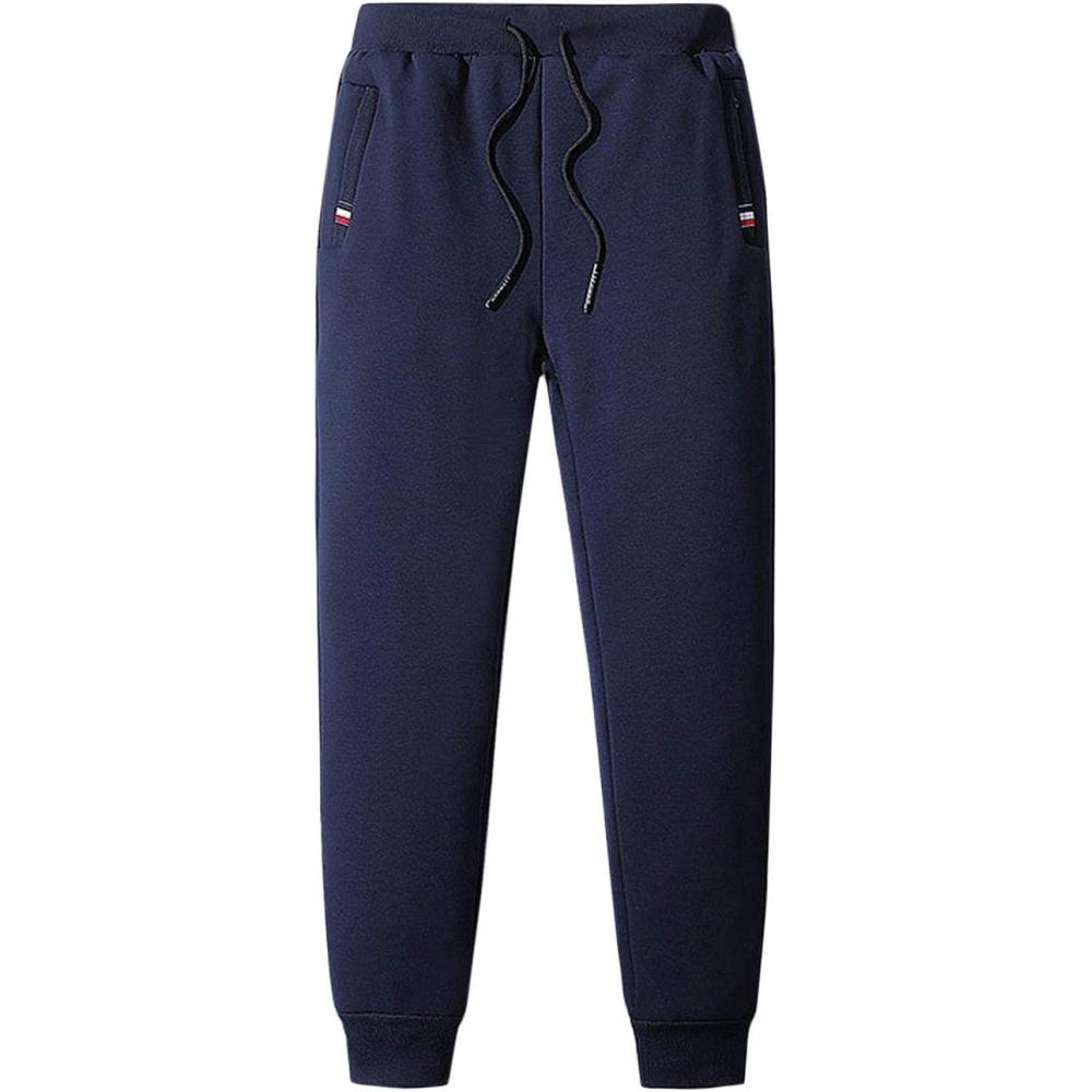 Flygo Men’s Warm Fleece Pants Sherpa Lined Active Running Camping Sweatpants(#2 Navy)