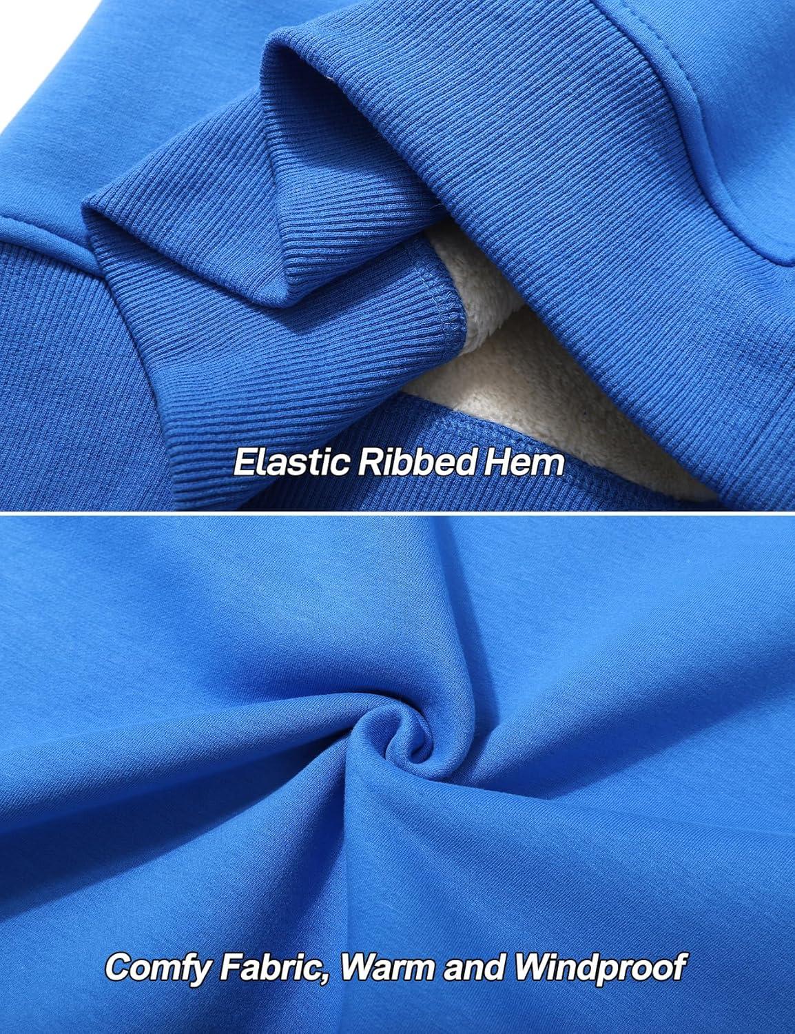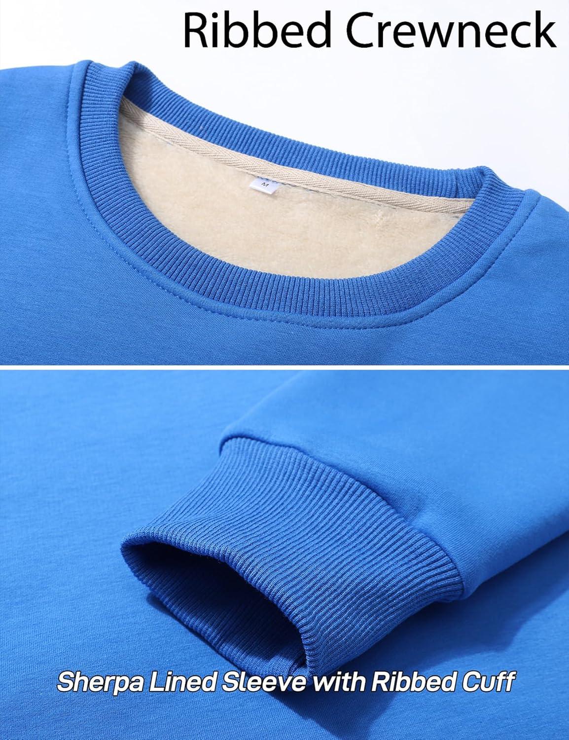 Flygo Men’s Warm Sherpa Lined Crewneck Sweatshirts Fleece Pullover Tops Heavy-weight Thick Thermal Cotton Sweat-Shirts(Blue)