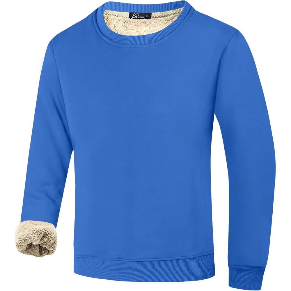 Flygo Men’s Warm Sherpa Lined Crewneck Sweatshirts Fleece Pullover Tops Heavy-weight Thick Thermal Cotton Sweat-Shirts(Azure)