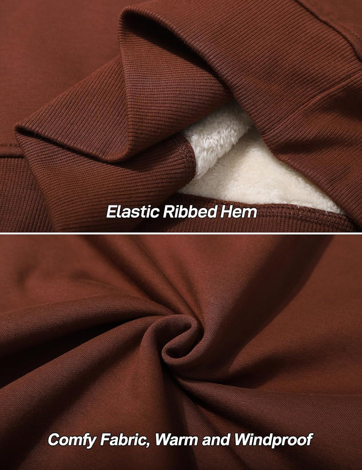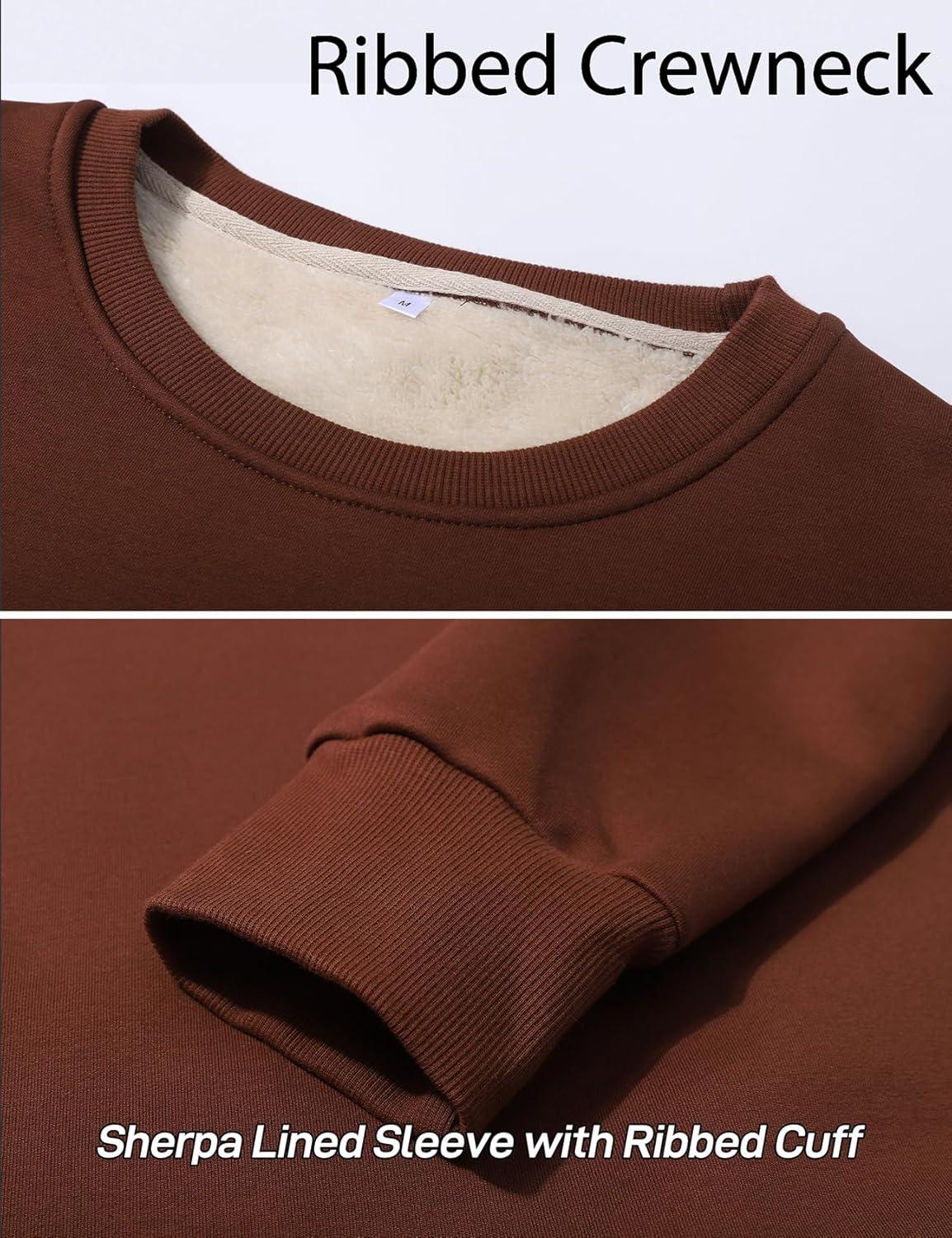 Flygo Men’s Warm Sherpa Lined Crewneck Sweatshirts Fleece Pullover Tops Heavy-weight Thick Thermal Cotton Sweat-Shirts(Brown)