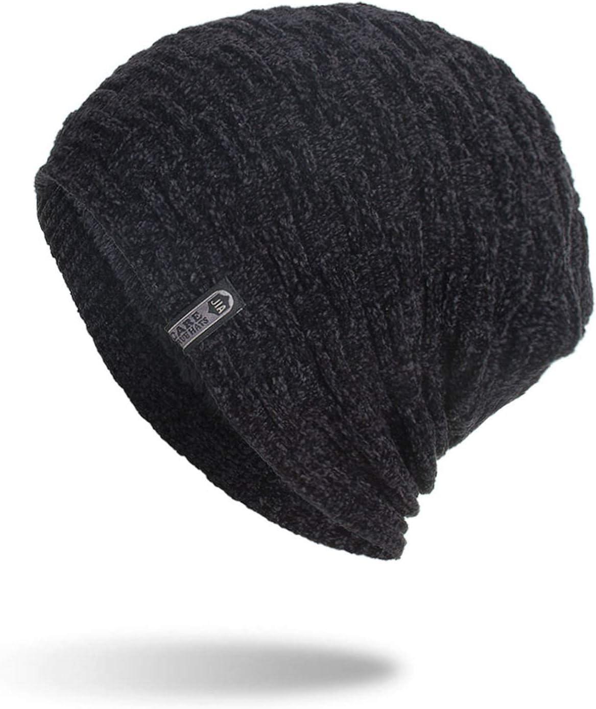 Flygo Mens Winter Fleece Lined Beanie Hat Scarf Set 2 Piece Skull Cap Neck Warmer(Black)