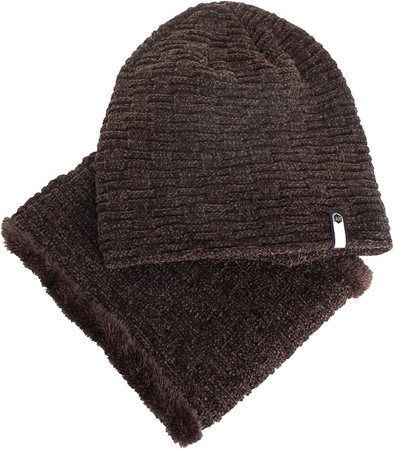 Flygo Mens Winter Fleece Lined Beanie Hat Scarf Set 2 Piece Skull Cap Neck Warmer(Coffee)