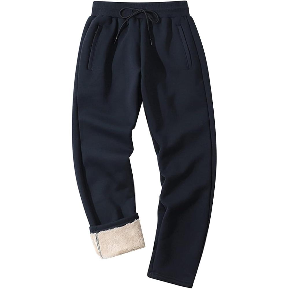 Flygo Mens Winter Fleece Lined Sweatepants Sherpa Lining Track Running Jogger Pants with Pockets(Deepblue)