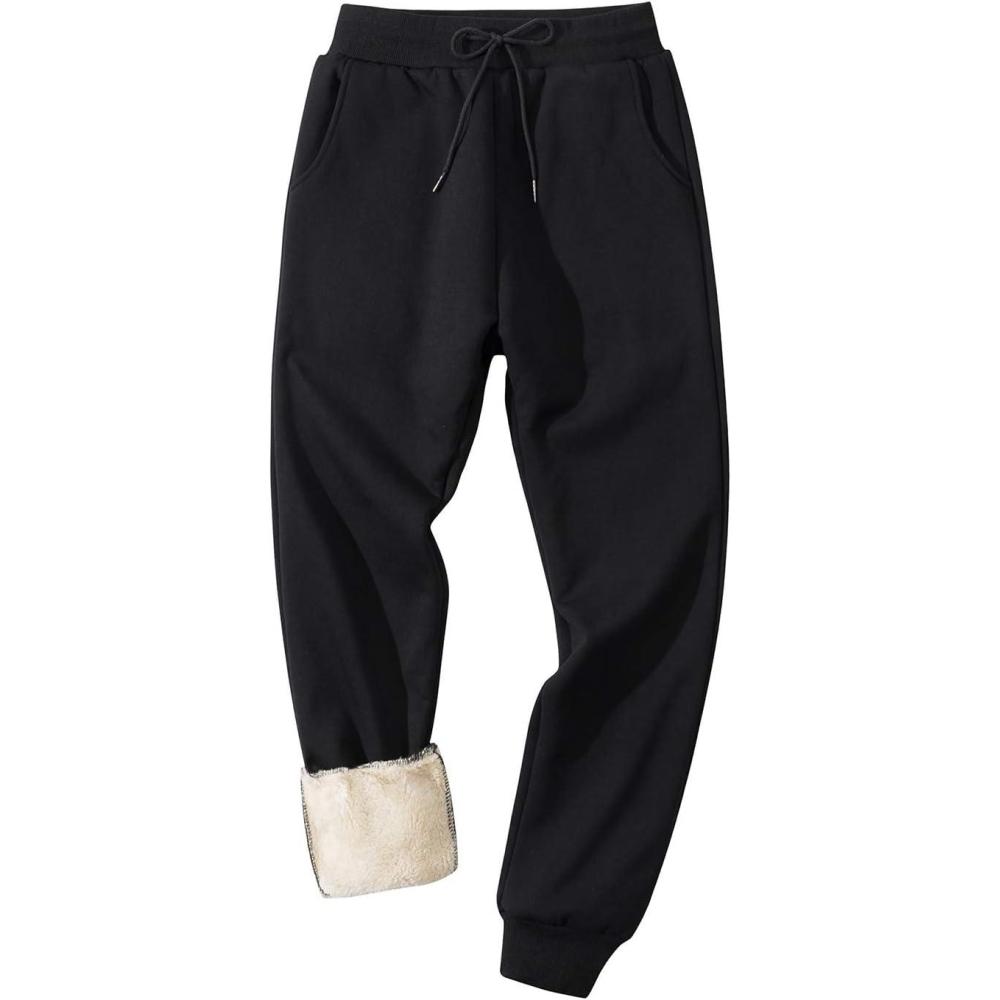 Flygo Men’s Winter Fleece Pants Sherpa Lined Sweatpants Active Running Jogger Pant(Black)