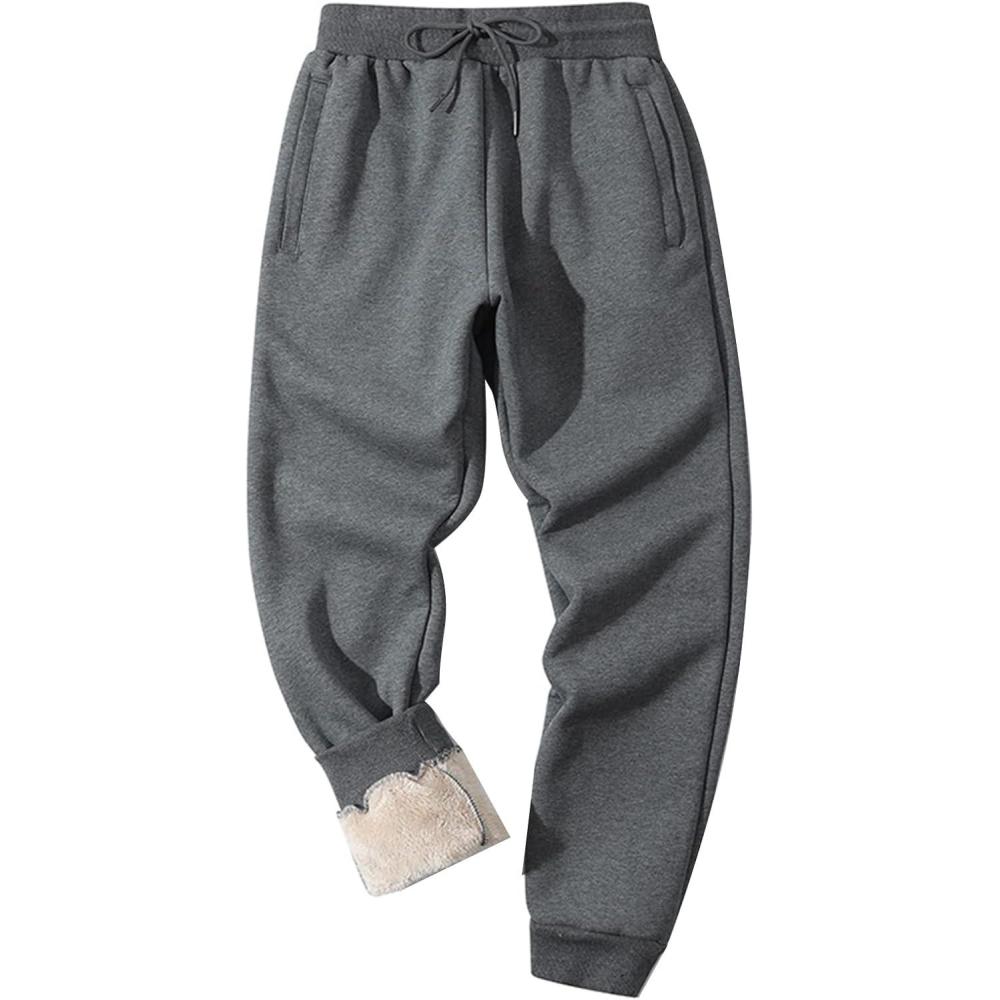 Flygo Mens Winter Fleece Sweatepants Sherpa Lined Sports Track Jogger Pants with Zipper Pockets(Deepgrey)