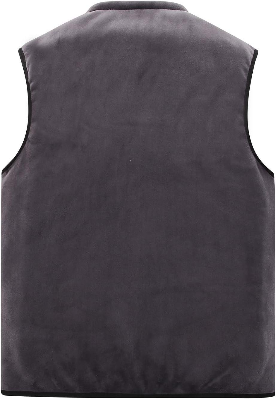 Flygo Mens Winter Sherpa Fleece Lined Vest Sleeveless Zip Up Warm Outdoor Travel Vest Jacket(Grey)
