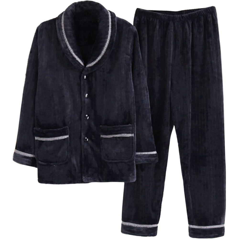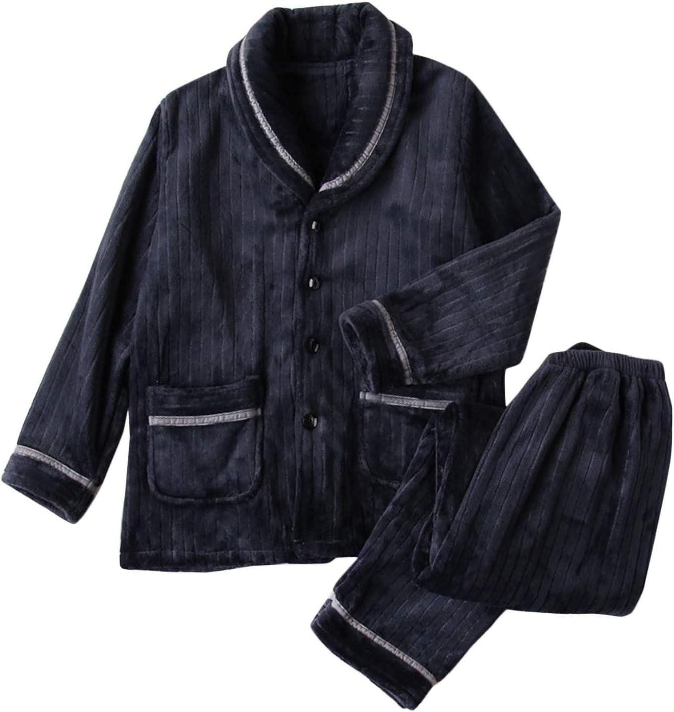 Flygo Men’s Winter Soft Flannel Full Length Pajama Set(Style 02 Navy)