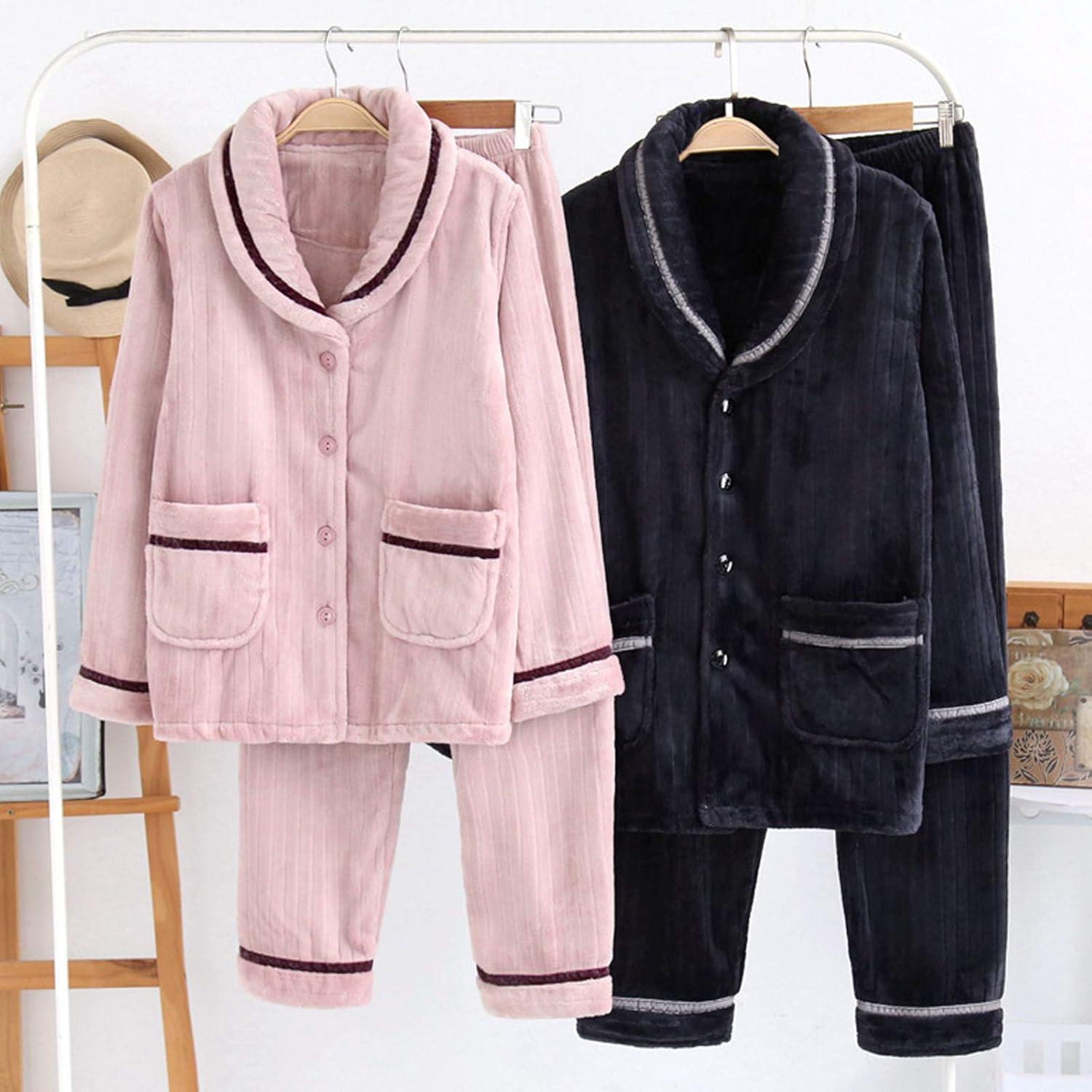 Flygo Warm Flannel Couples Pajamas Sets Sleepwear