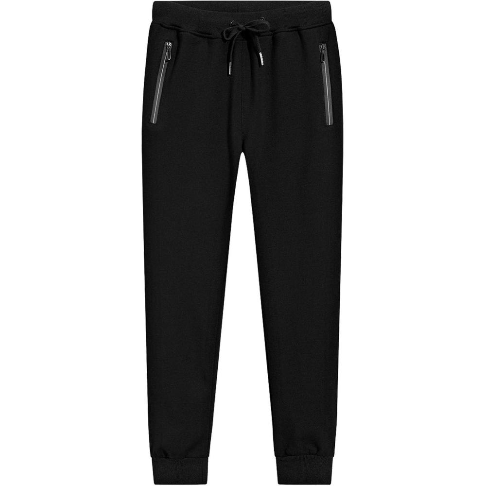 Flygo Men’s Winter Thermal Fleece Tapered Joggers Running Sweatpants Active Pants(Black)