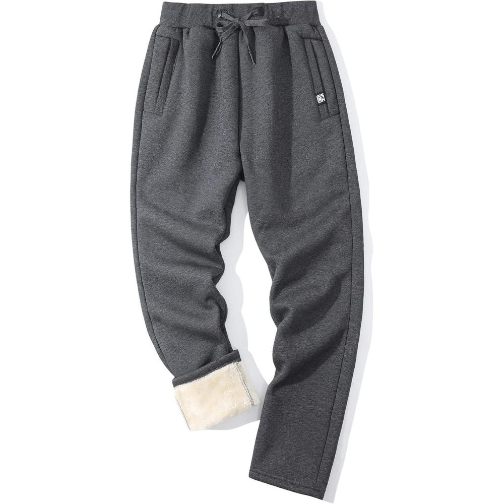 Flygo Men’s Winter Warm Fleece Jogger Pants Sherpa Lined Sweatpants Active Track Pants(02 Grey)
