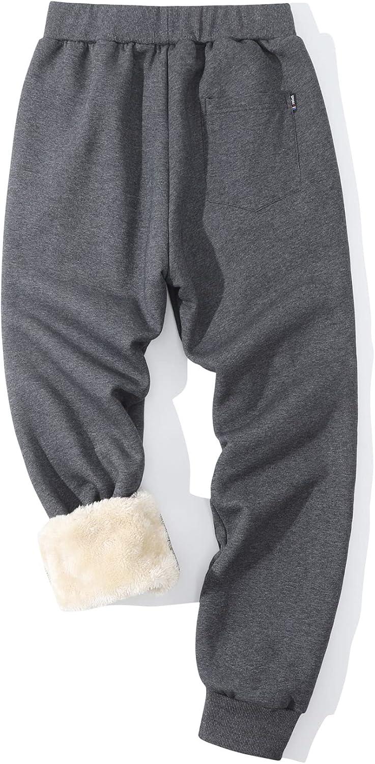 Flygo Men’s Winter Warm Fleece Jogger Pants Sherpa Lined Sweatpants Active Track Pants(Dark Grey)