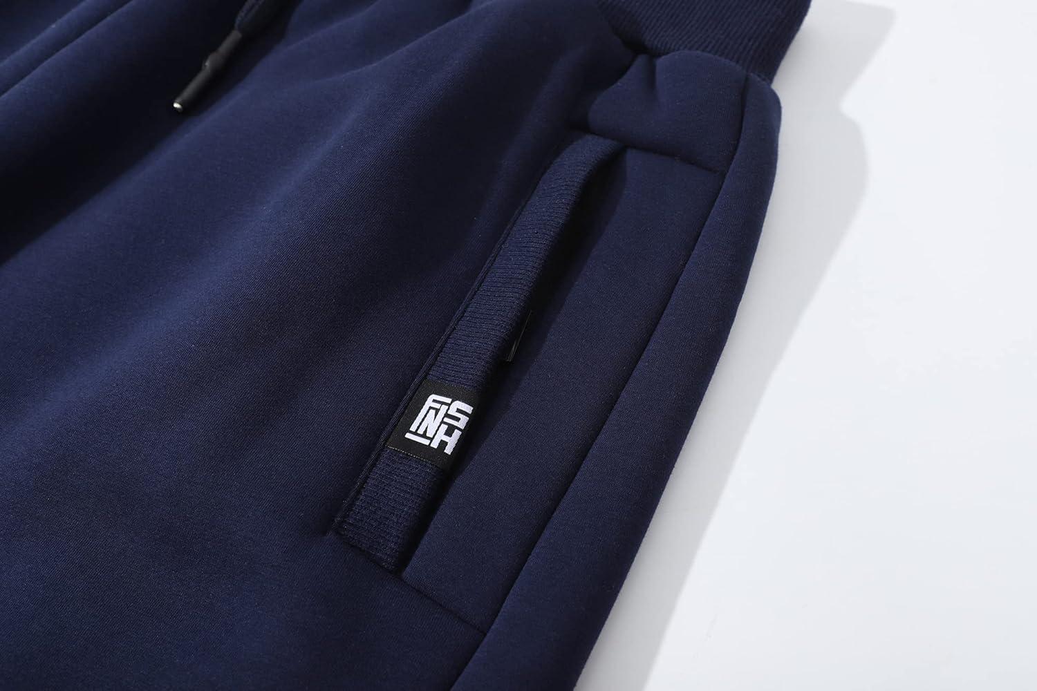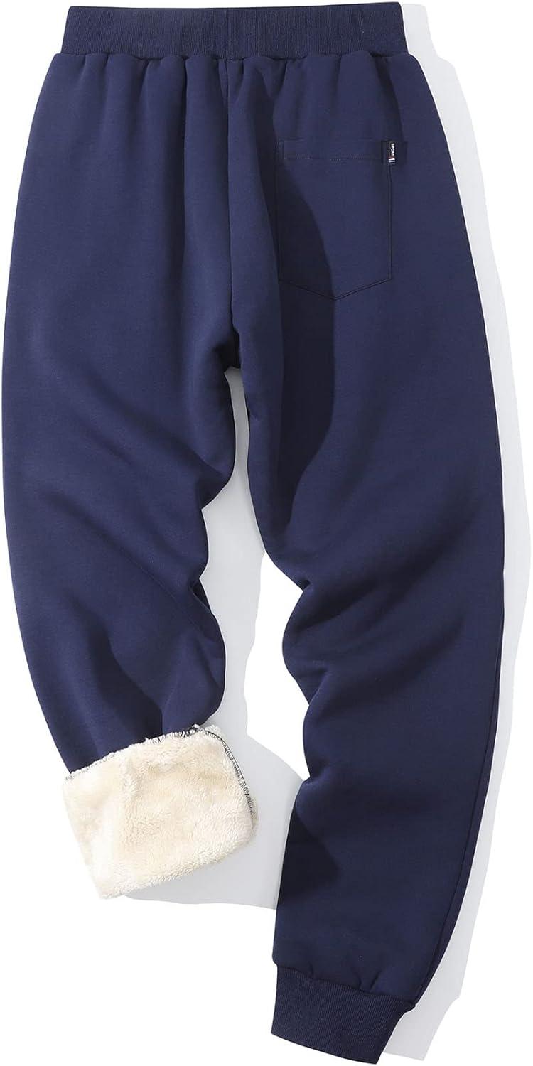 Flygo Men’s Winter Warm Fleece Jogger Pants Sherpa Lined Sweatpants Active Track Pants(Navy)