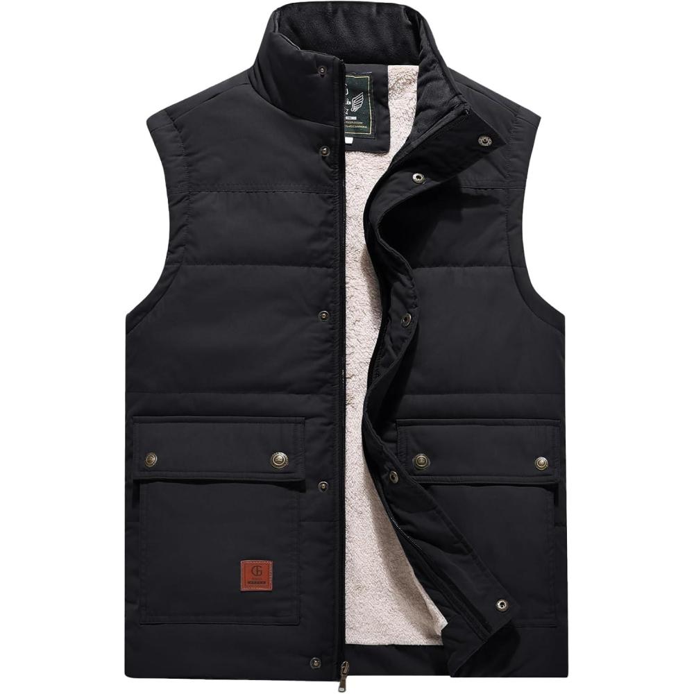 Flygo Men’s Winter Warm Outdoor Padded Puffer Vest Thick Fleece Lined Sleeveless Jacket(Black)