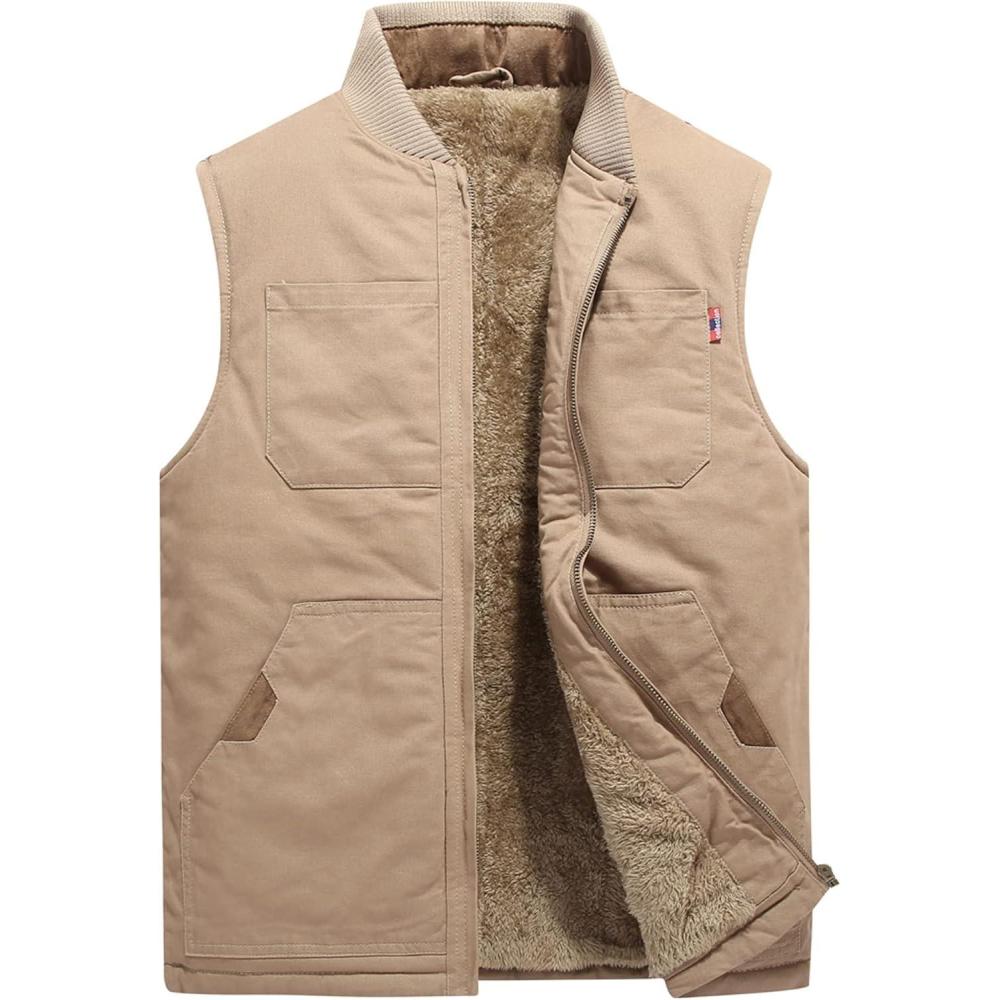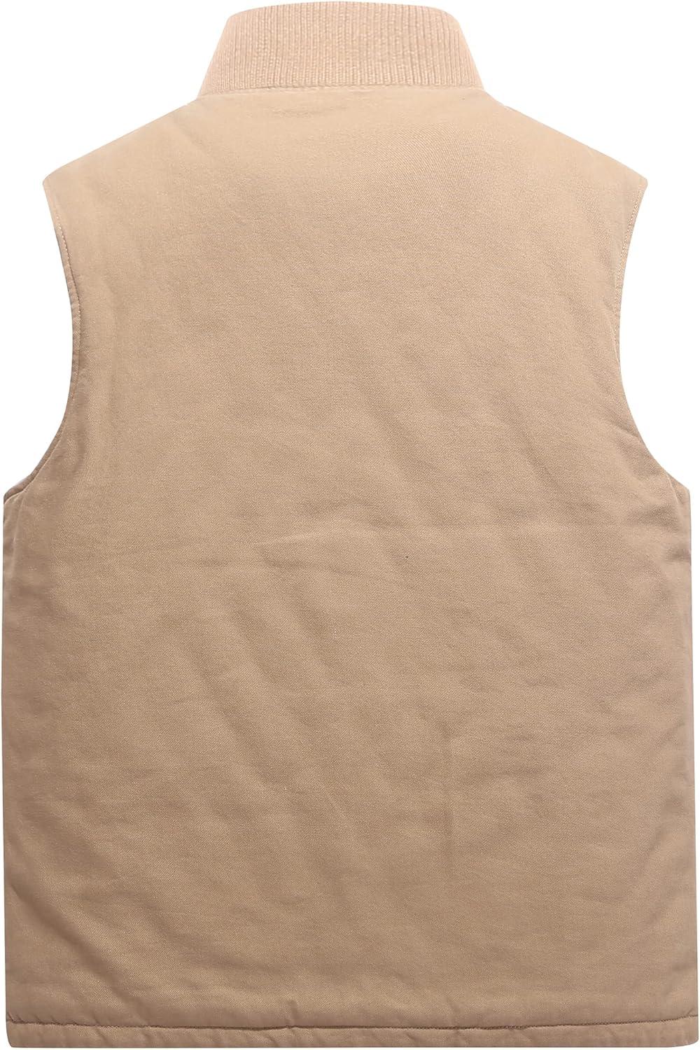 Flygo Mens Winter Warm Outdoor Utility Hunting Work Quilted Lined Canvas Vest(02 Khaki)