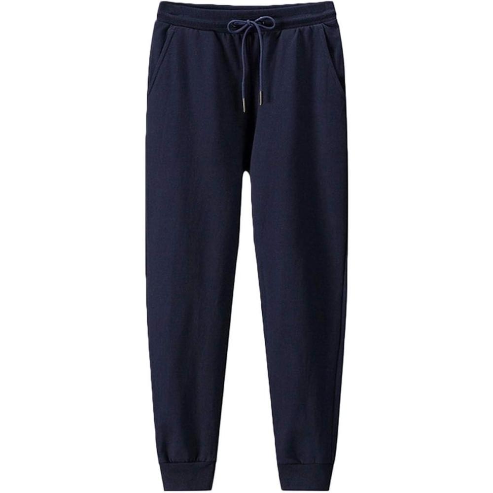 Flygo Men’s Workout Running Active Joggers Pants Casual Cotton Closed-Bottom Sweatpants(Navy)