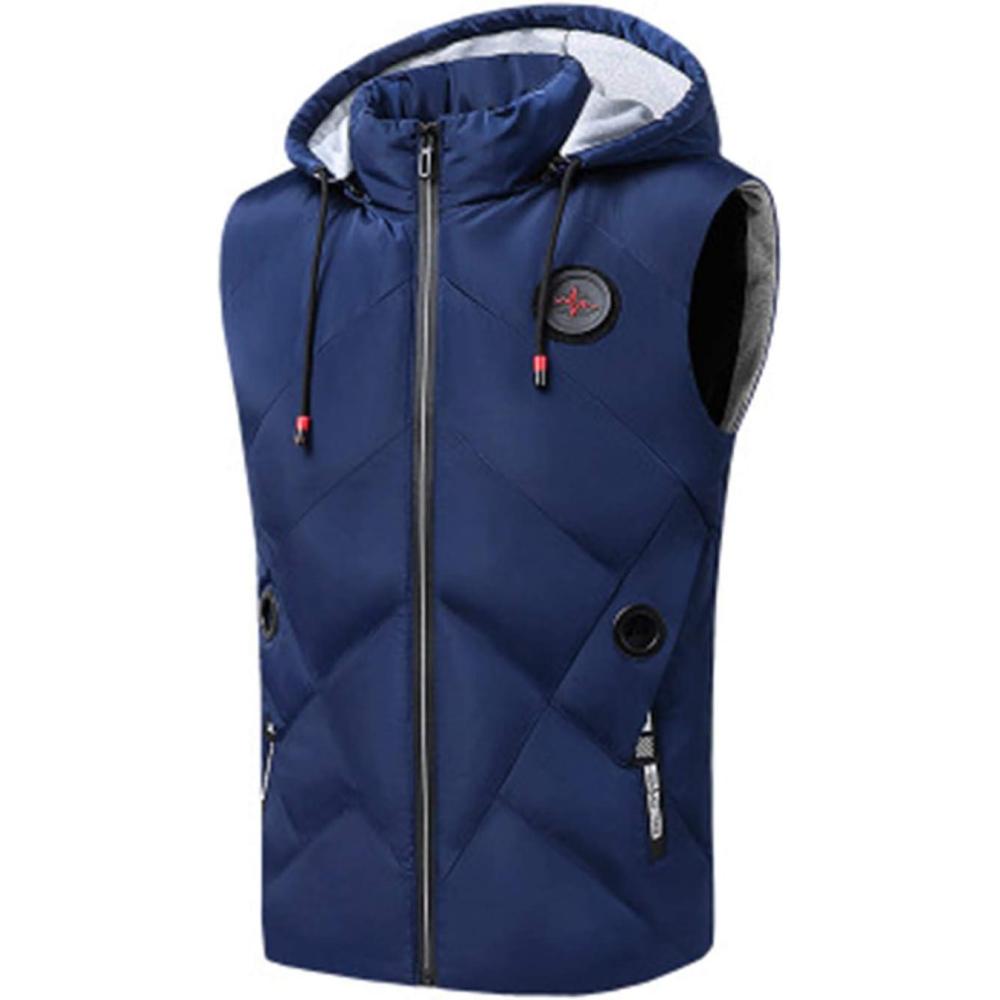 Men's Fall Winter Casual Thick Padded Hooded Vest Full Zip Waistcoat Jackets Gilet Outerwear