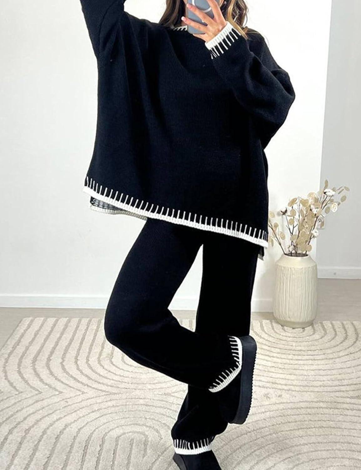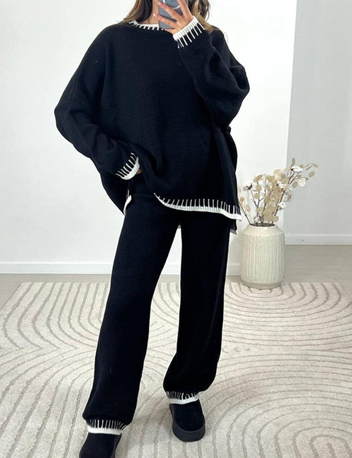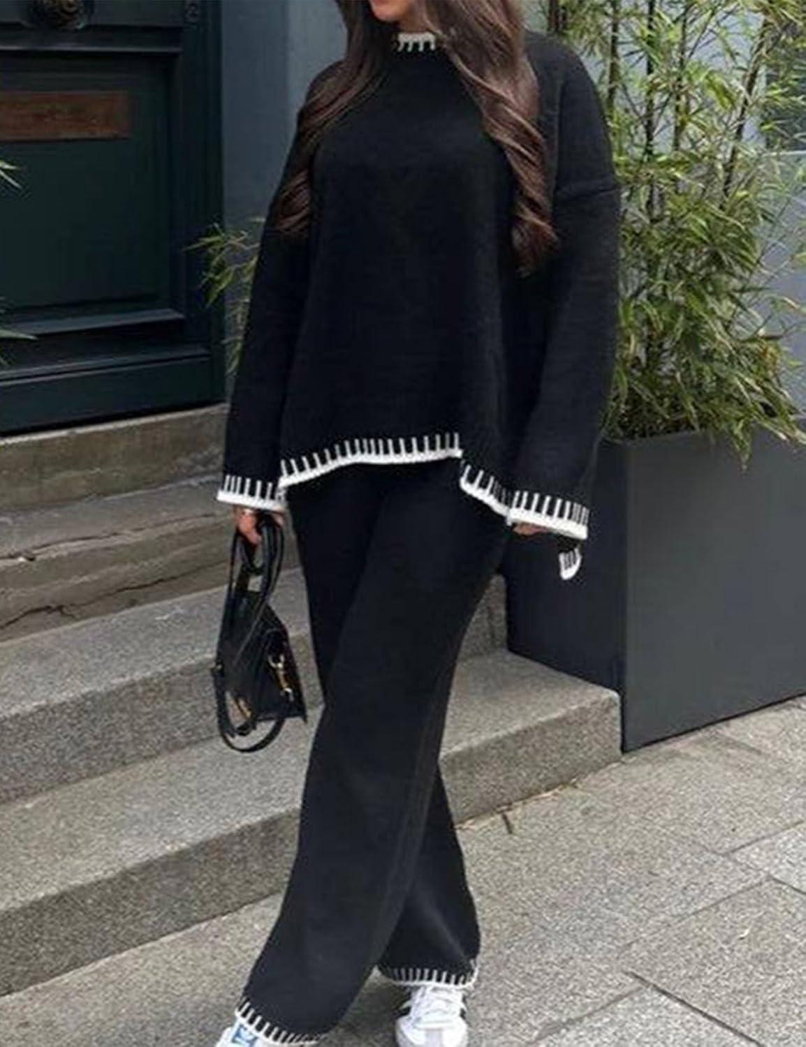 Flygo sweater sets for women includes a long sleeve pullover sweater top and wide leg pants, creating a chic and trendy lounge set.
