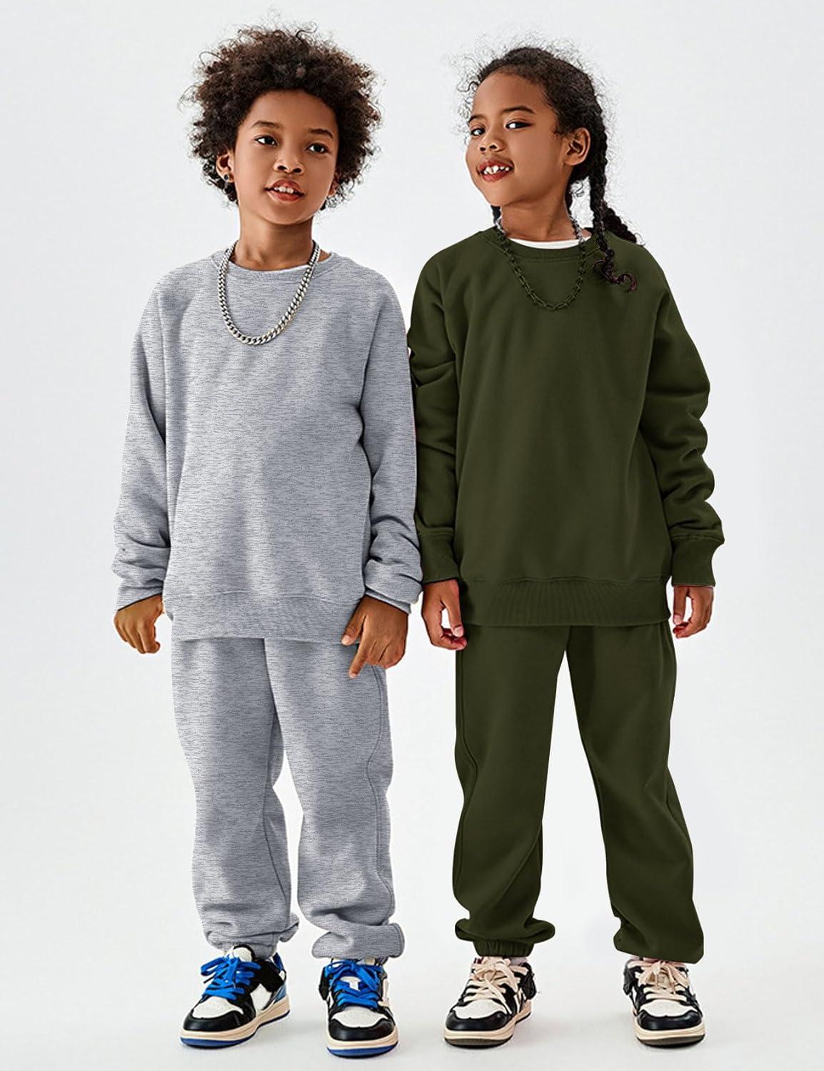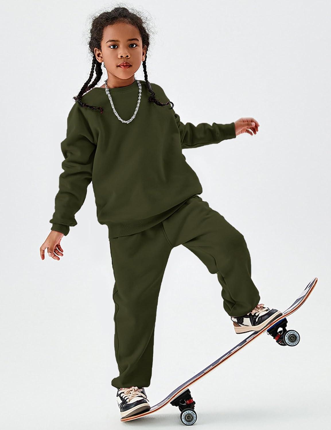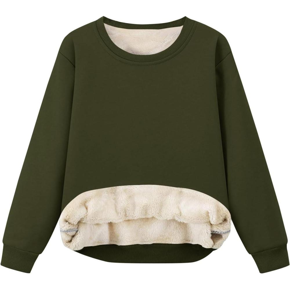 Flygo Unisex Boys Girls Fleece Lined Crewneck Sweatshirt Kids Warm Sherpa Pullover Sweater Sweatshirts Fall Winter Clothes(Army Green)
