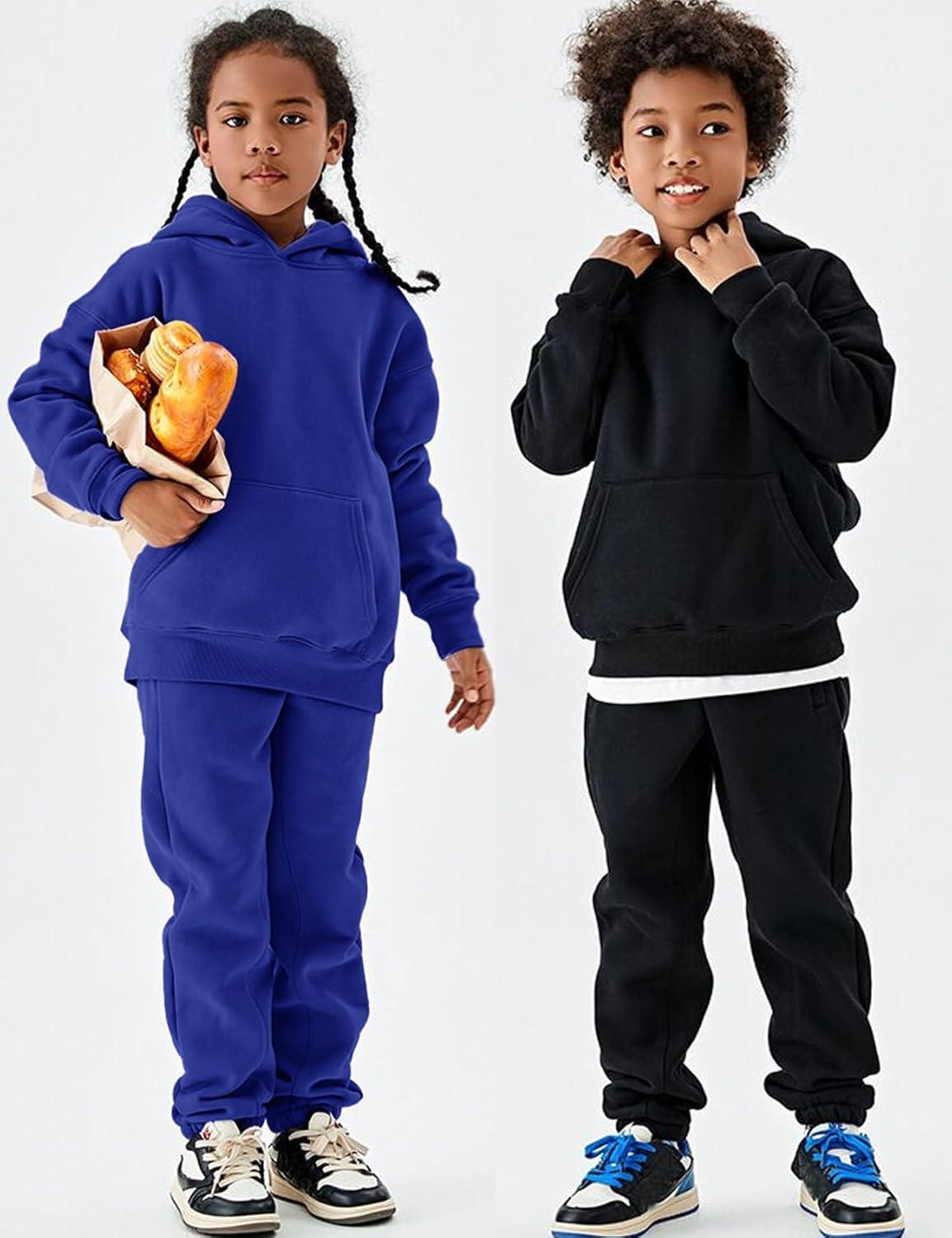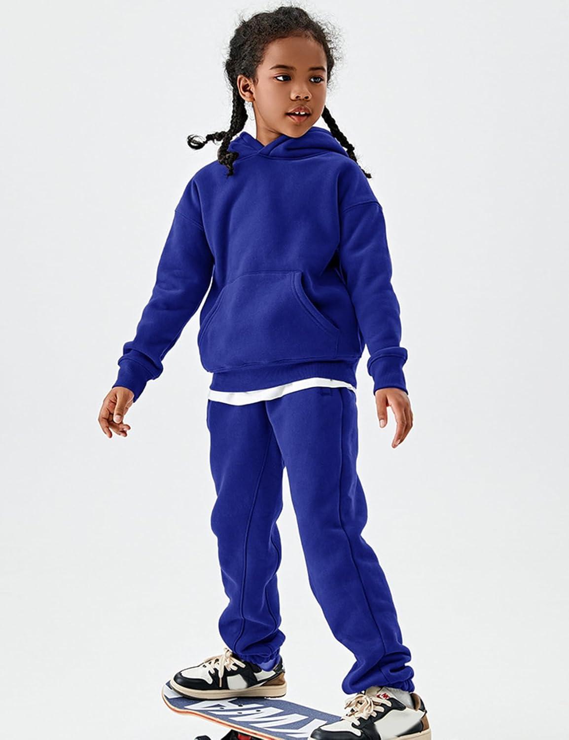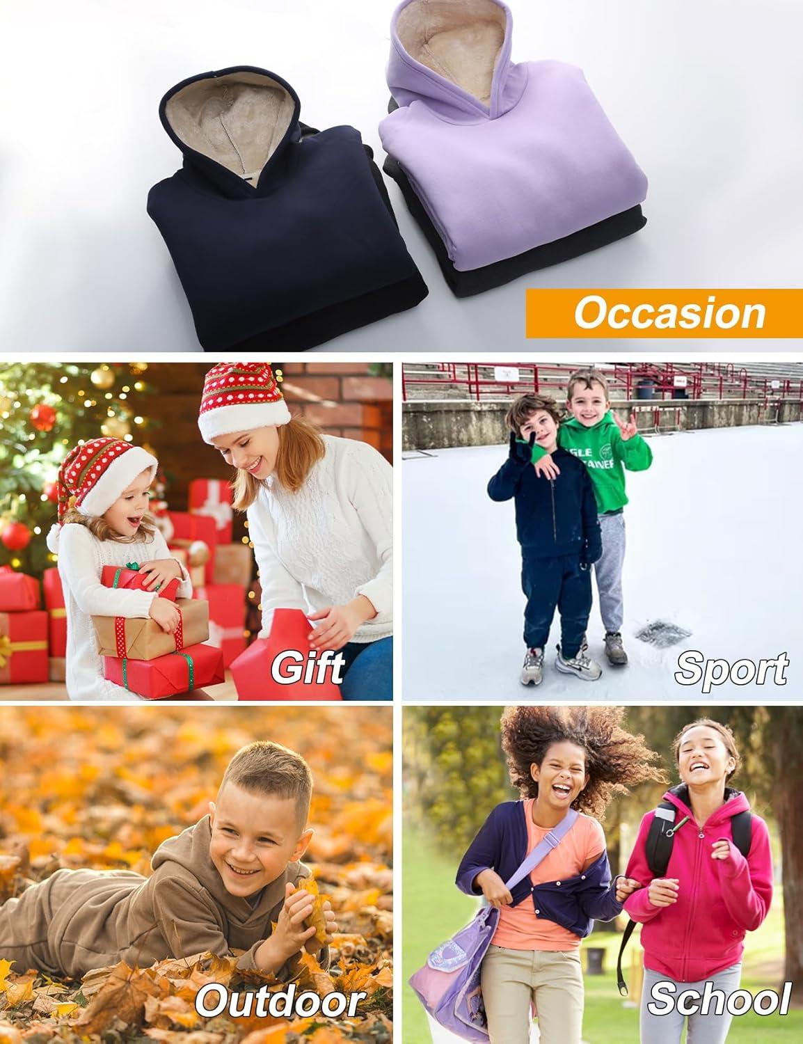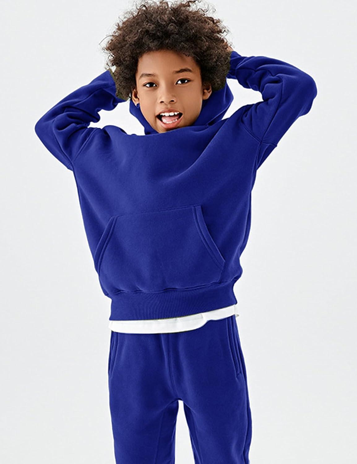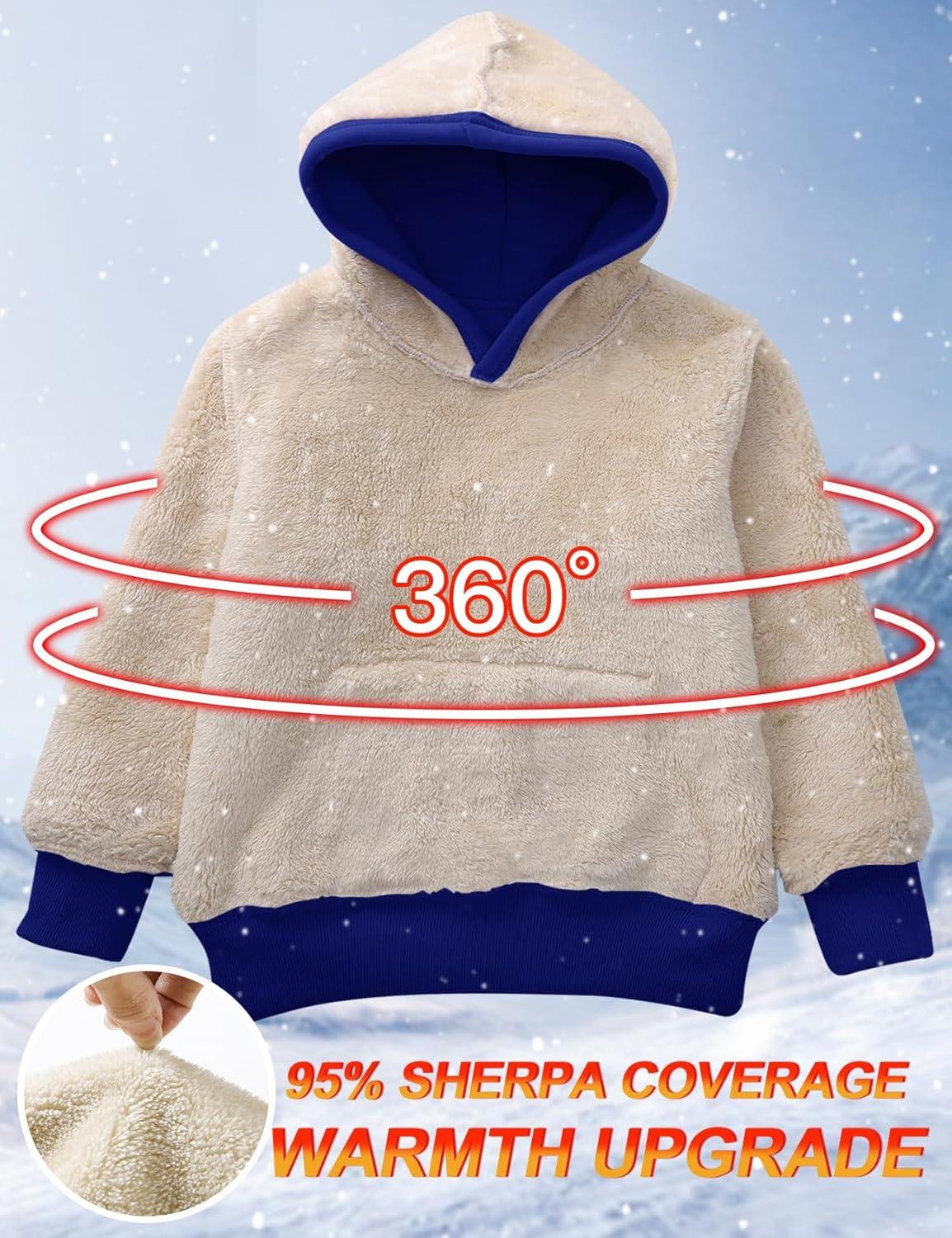 Flygo Unisex Boys Girls Fleece Lined Sherpa Hoodie Kids Warm Winter Hoodies Pullover Hooded Sweatshirt Sweater 4-13Y(Royal Blue)