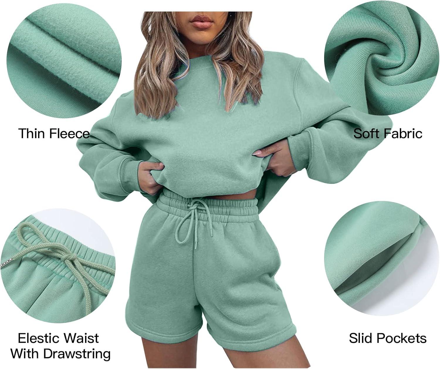 Womens casual sexy 2 two piece fleece outfits loungewear outwear pajama set oversized spring fall tracksuit outfits fitness suits long sleeve matching lounge set crop tops gym jogger jogging suits sweatsuit sweatshirt shorts for women girls。