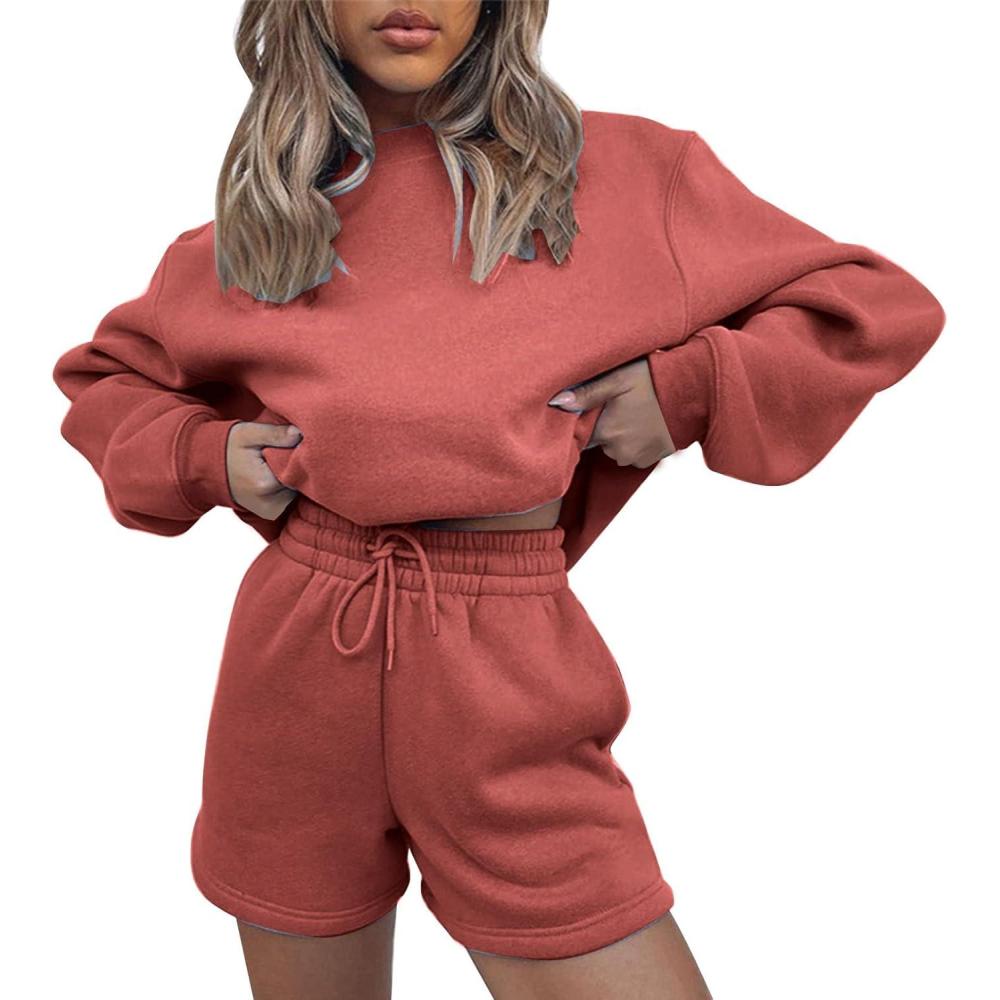Flygo Women 2 Piece Tracksuits Outfits Fleece Oversized Jogging Suit Cropped Pullover Tops Shorts(Brick Red)