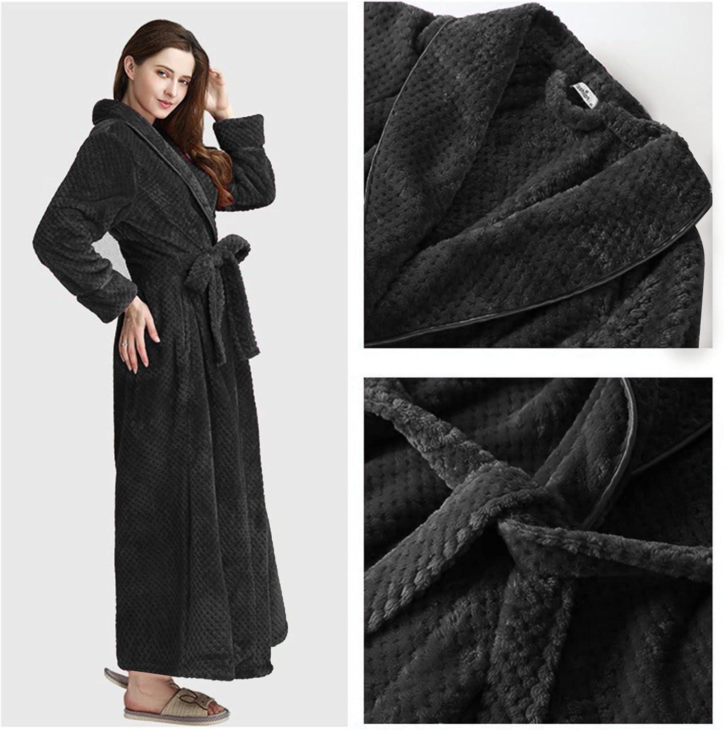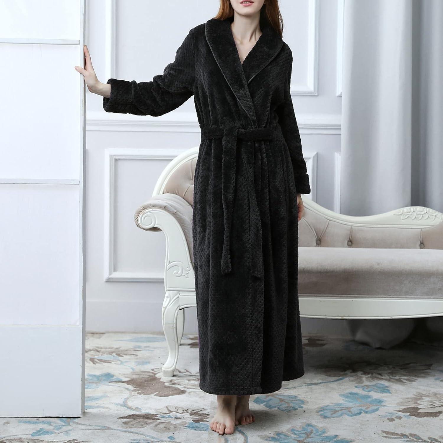 Flygo Women Fleece Long Robe Plush Long Bathrobes Soft Warm Sleepwear Pjs Loungewear with Pockets(Black-M)
