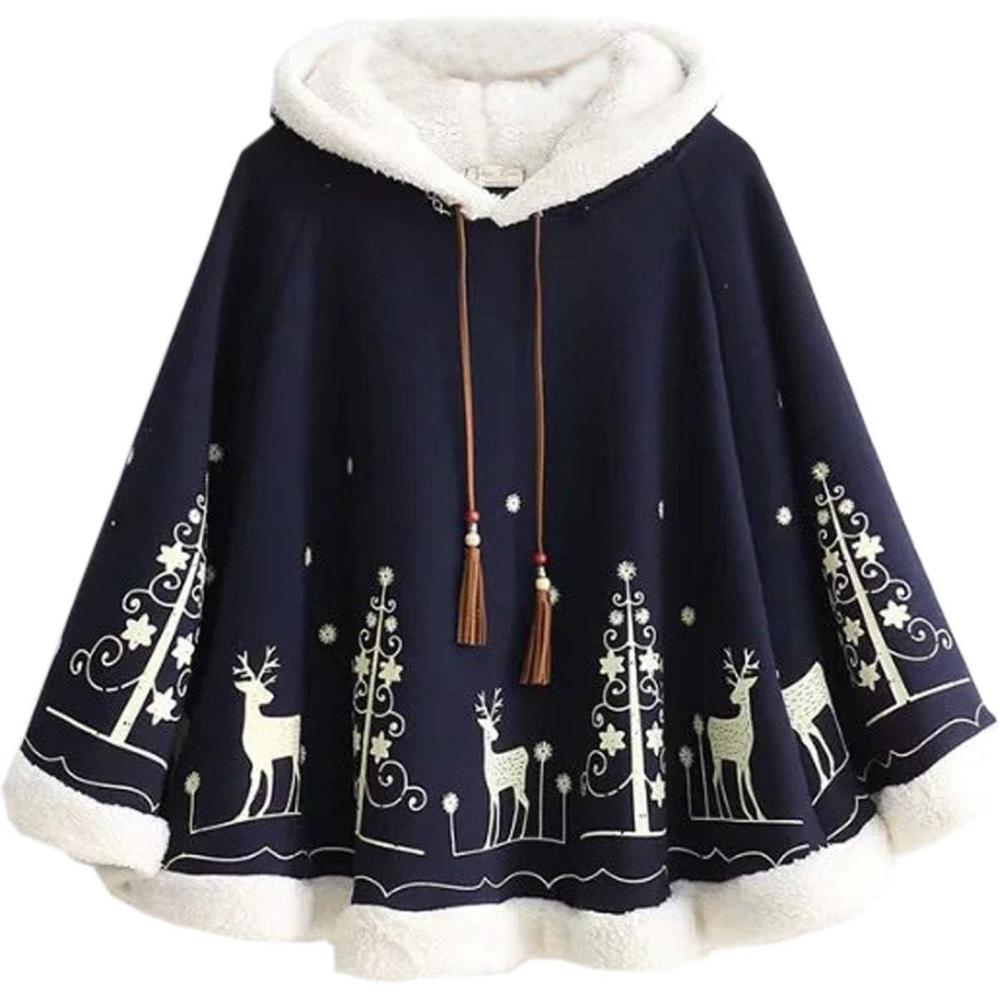 Flygo Women Girl’s Cute Fleece Lined Hooded Cape Poncho Cloak Coat Animal Printed(Dark Blue)