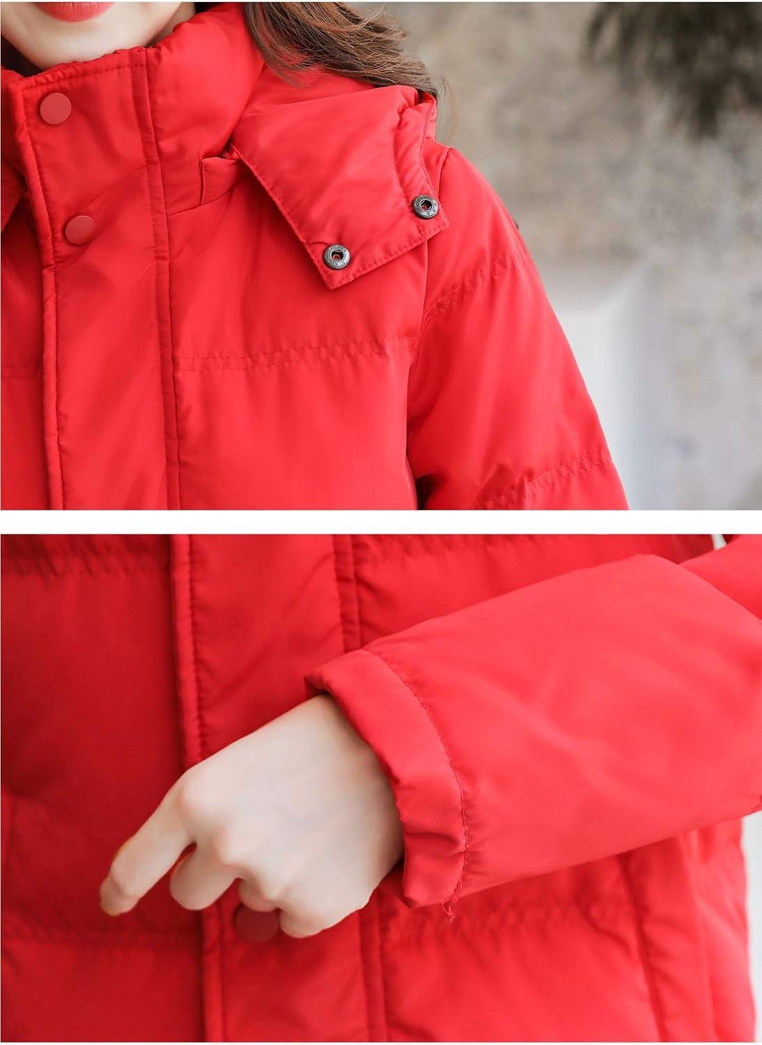 Flygo Women Maxi Down Coat Thickened Long Hooded Quilted Insulated Puffer Parka Jacket(Red)