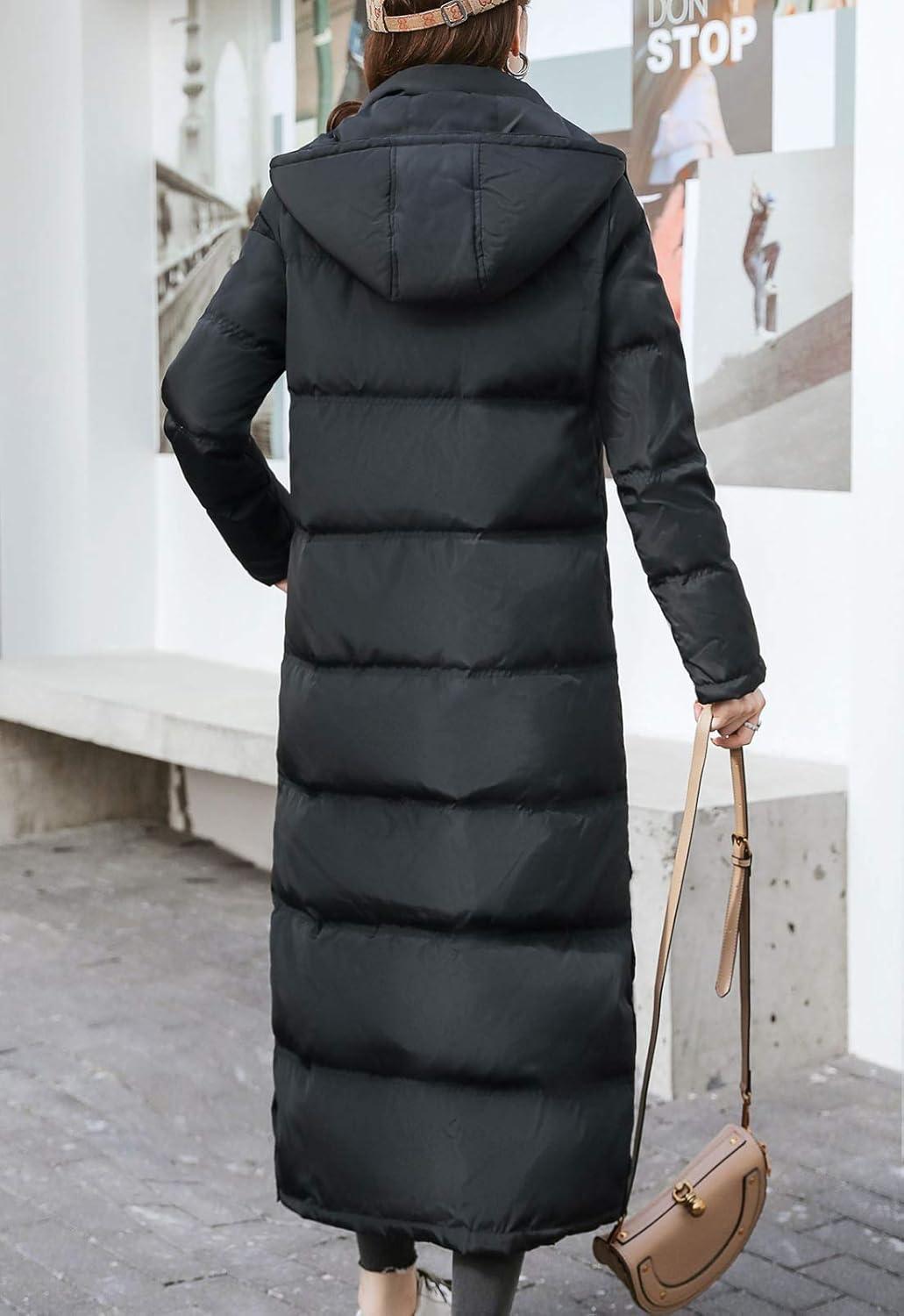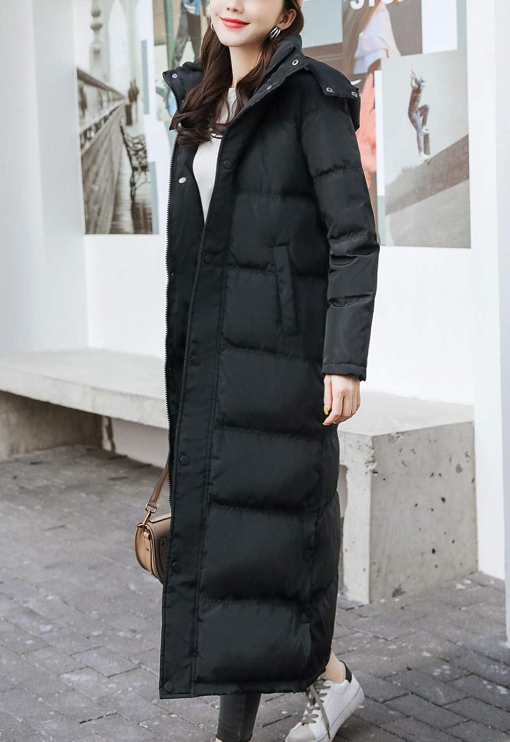 Flygo Women Maxi Down Coat Thickened Long Hooded Quilted Insulated Puffer Parka Jacket(Black)
