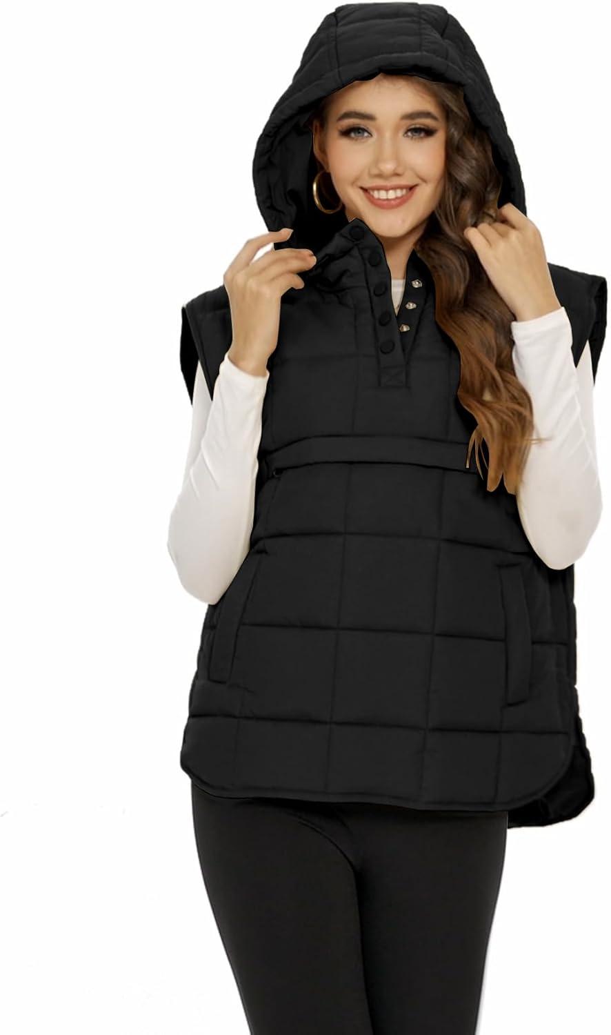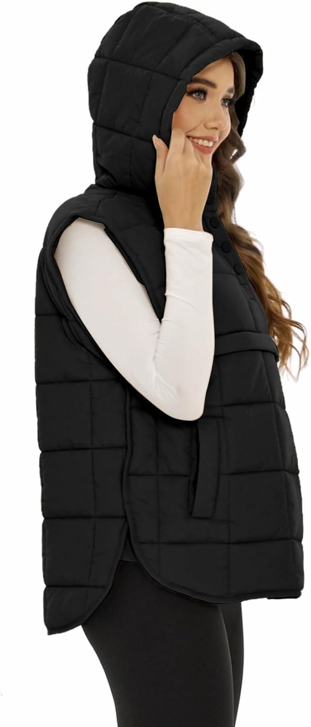 Flygo Women Quilted Pullover Puffer Vest Jacket Oversized Lightweight Sleeveless Down Vests Outerwear(Black)