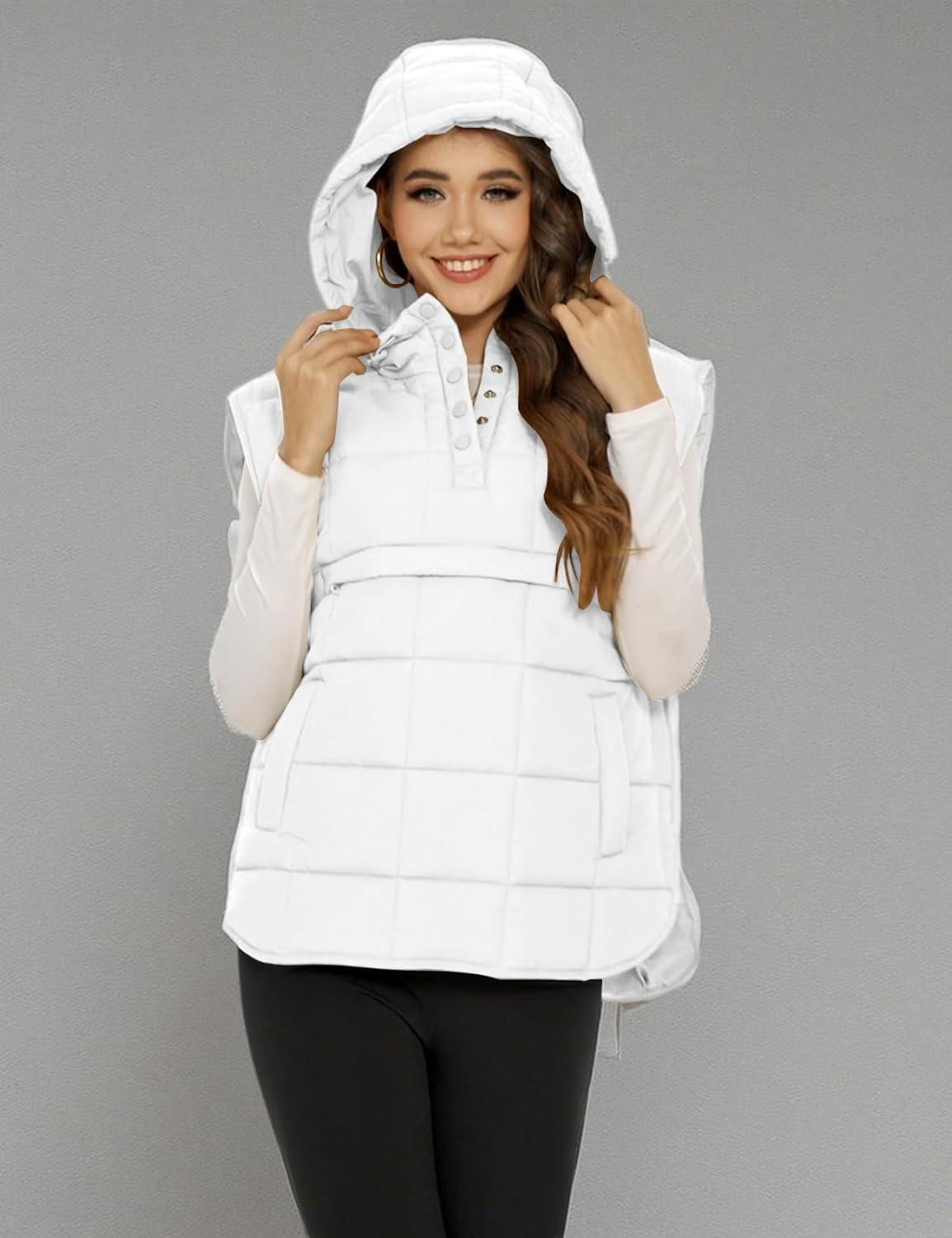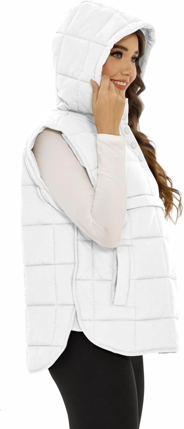 Flygo Women Quilted Pullover Puffer Vest Jacket Oversized Lightweight Sleeveless Down Vests Outerwear(White)