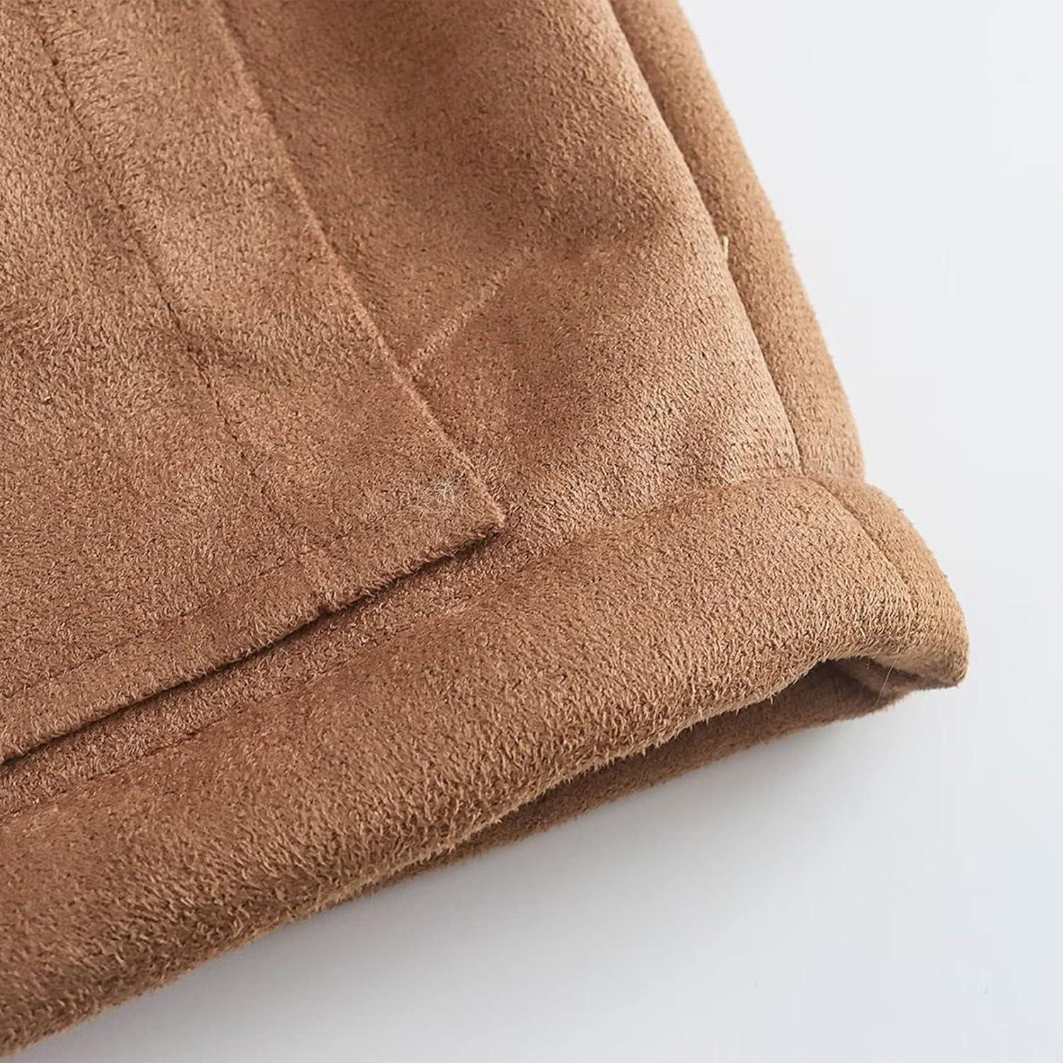 Flygo women winter button sherpa lined faux suede leather cropped jacket coat.