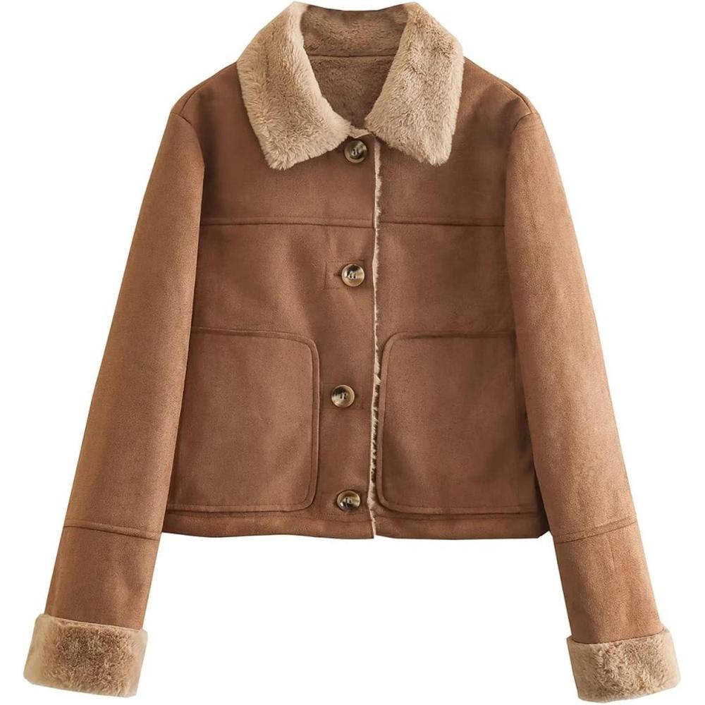 Suede jacket women, faux leather jacket women, faux fur jacket women, super warm and cozy.