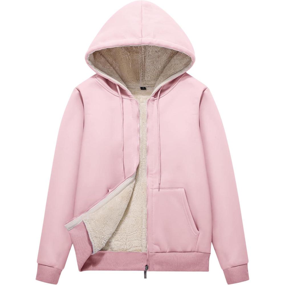 Flygo Women Winter Hoodies Zip Up Fleece Sherpa Lined Warm Sweatshirts Jacket(Pink)