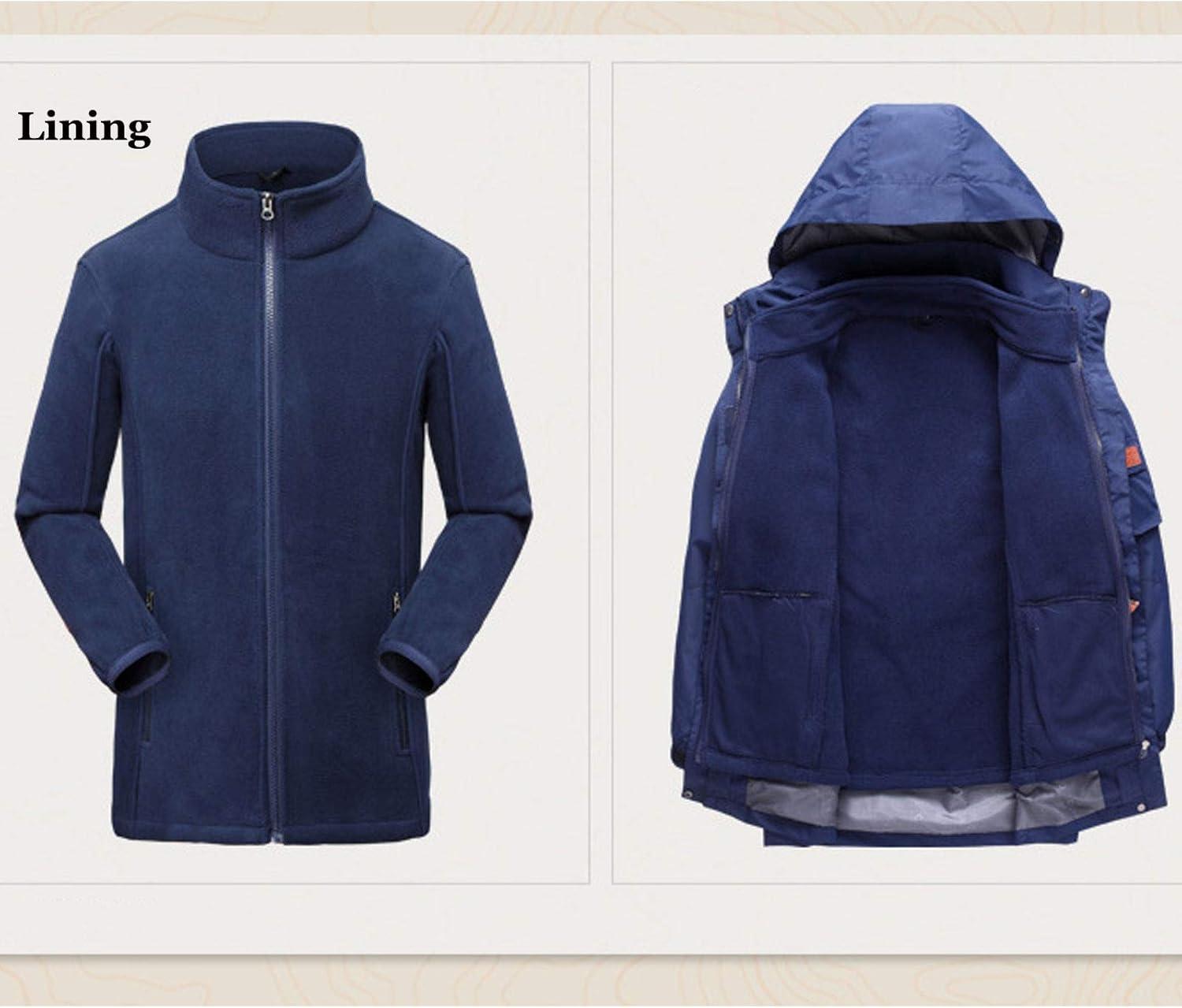 Flygo Womens 3 in 1 Fleece Lined Rain Jacket Windproof Waterproof Parkas(Navy)