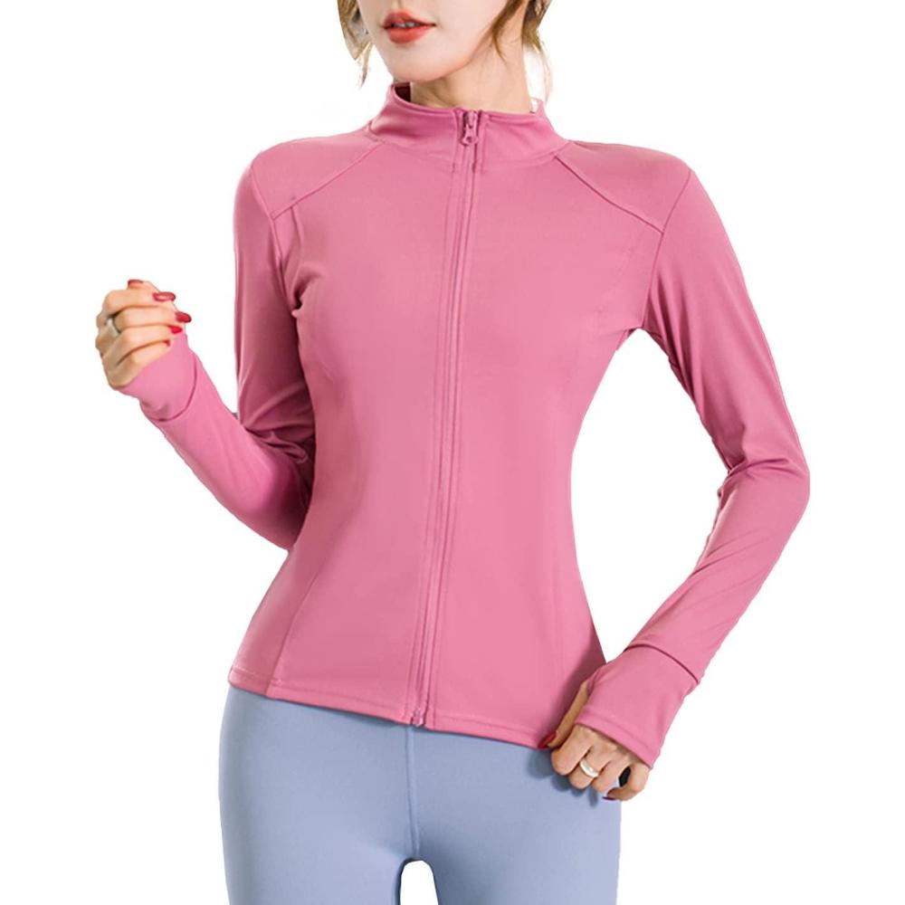 Flygo Women’s Athletic Lightweight Full-zip Workout Running Yoga Jacket With Thumb Hole(Pink)