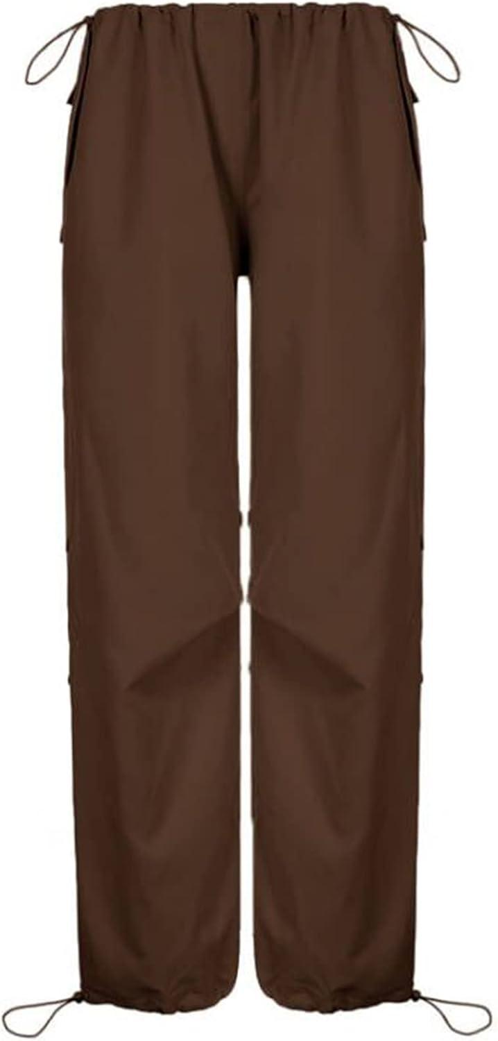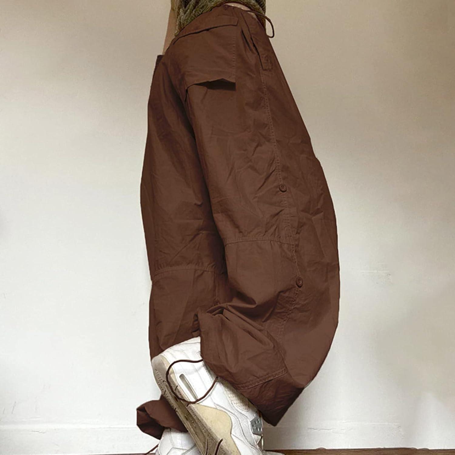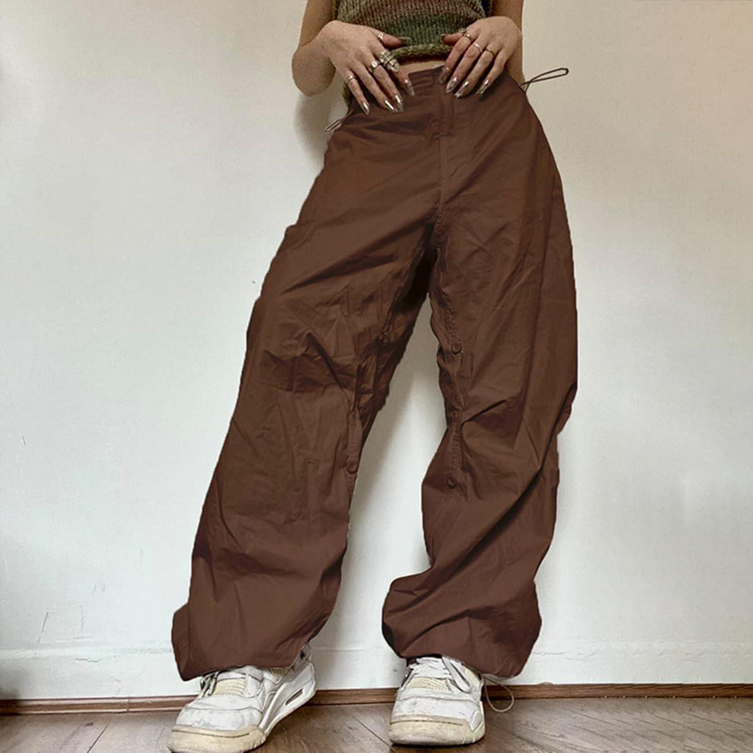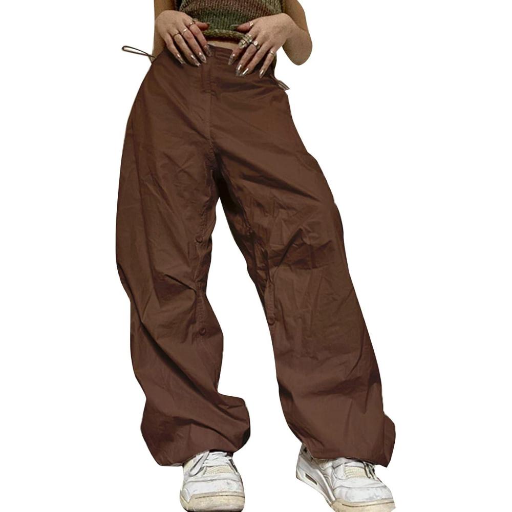 Flygo Women’s Baggy Cargo Pants Streetwear Hip Hop Joggers Sweatpants Drawstring Wide Leg Cinch Trousers(Brown)