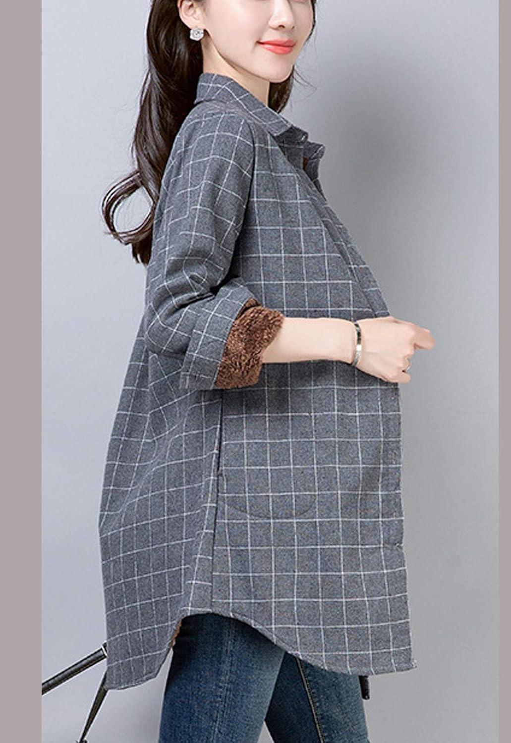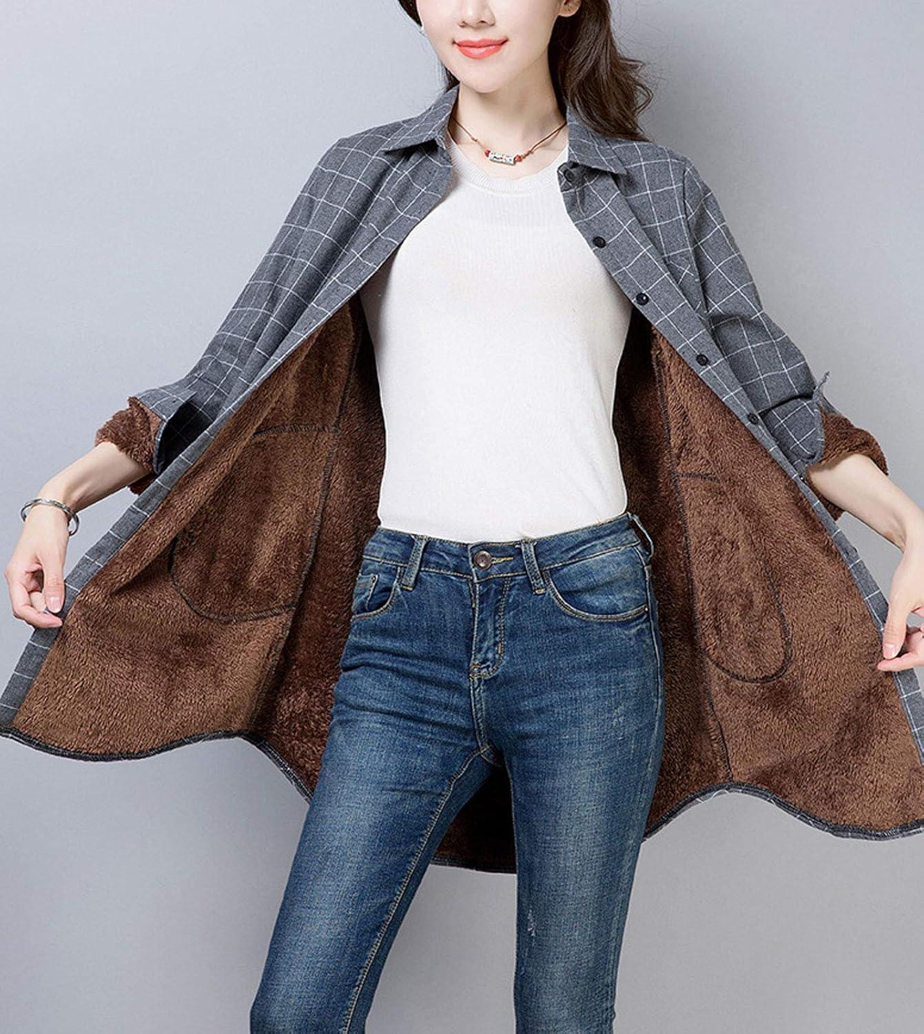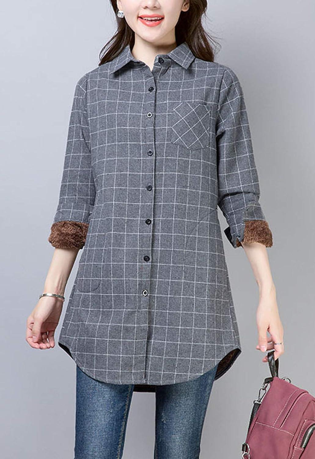 Flygo womens shirt/Plaid shirt/Checkered shirt/Sherpa lined shirt/Button down shirt