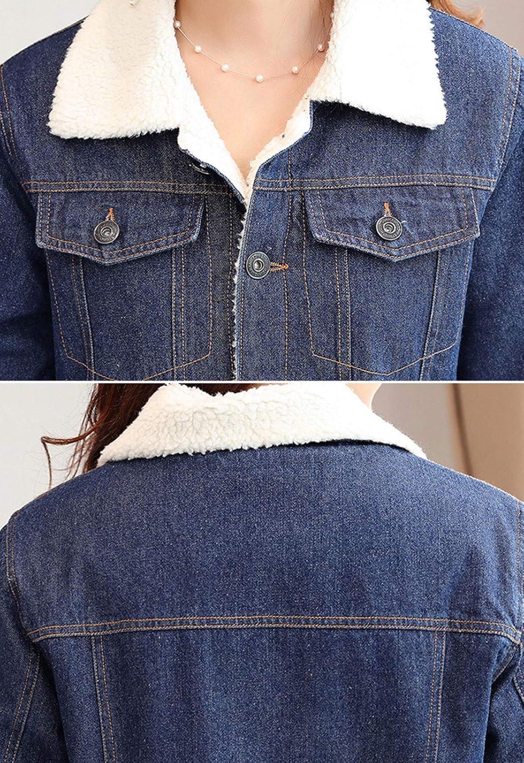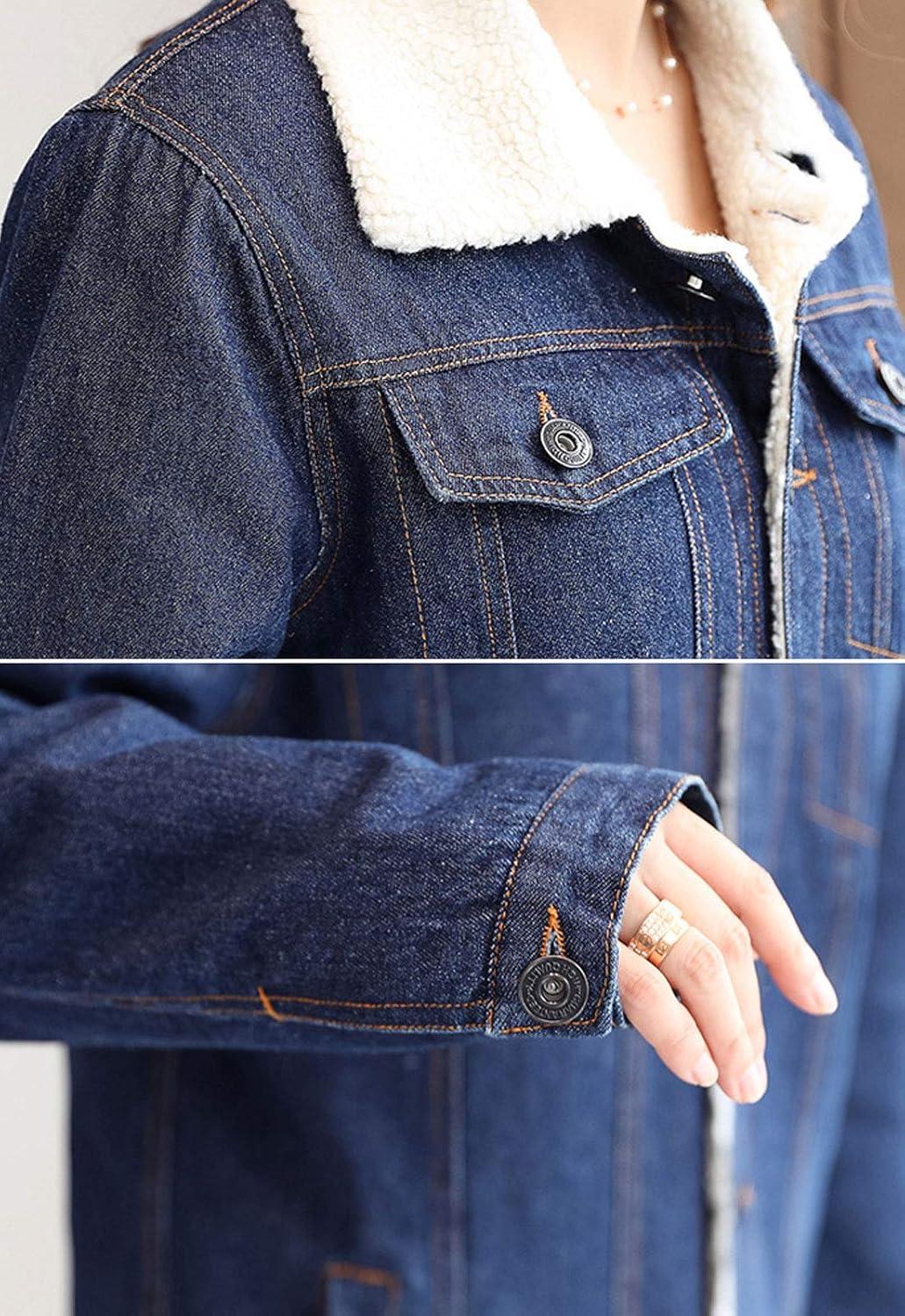Flygo Women’s Casual Lapel Fleece Sherpa Lined Denim Jean Jacket Trucker Coat(Dark Blue)
