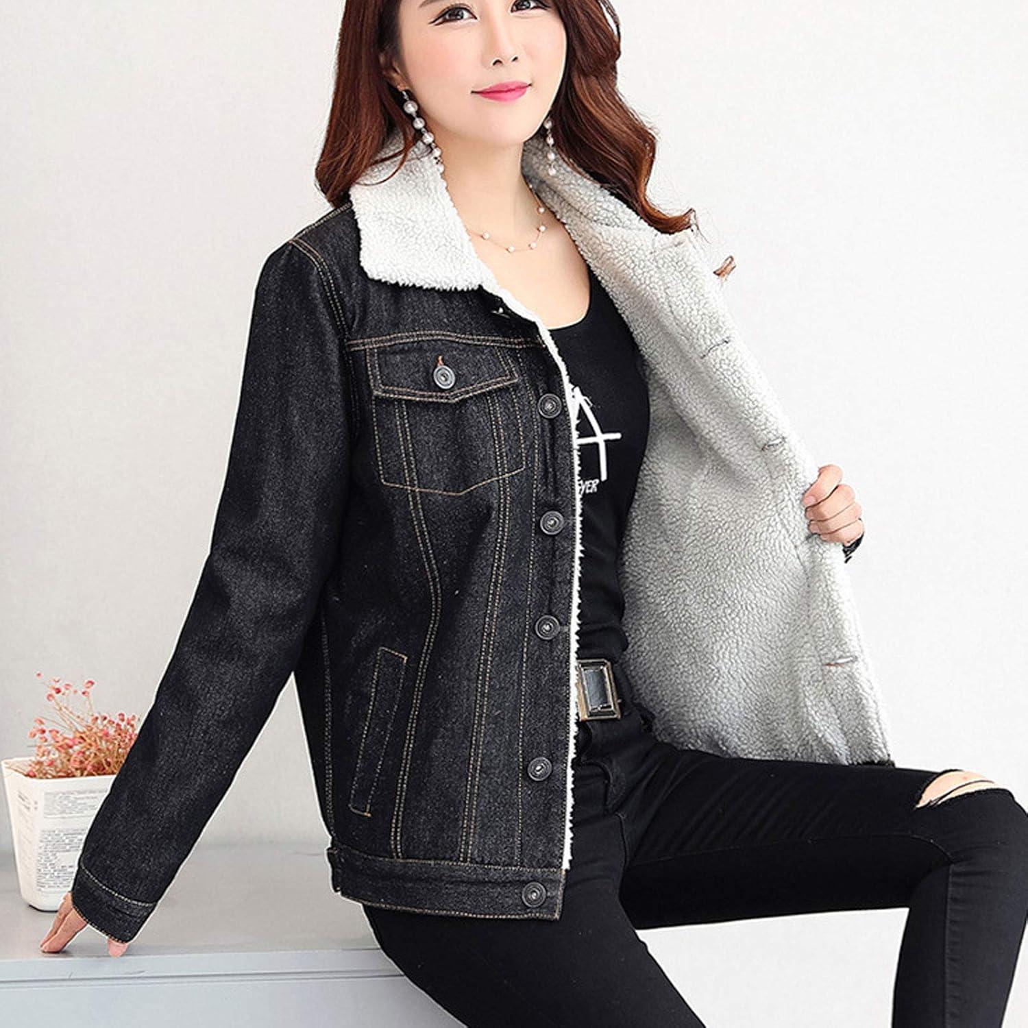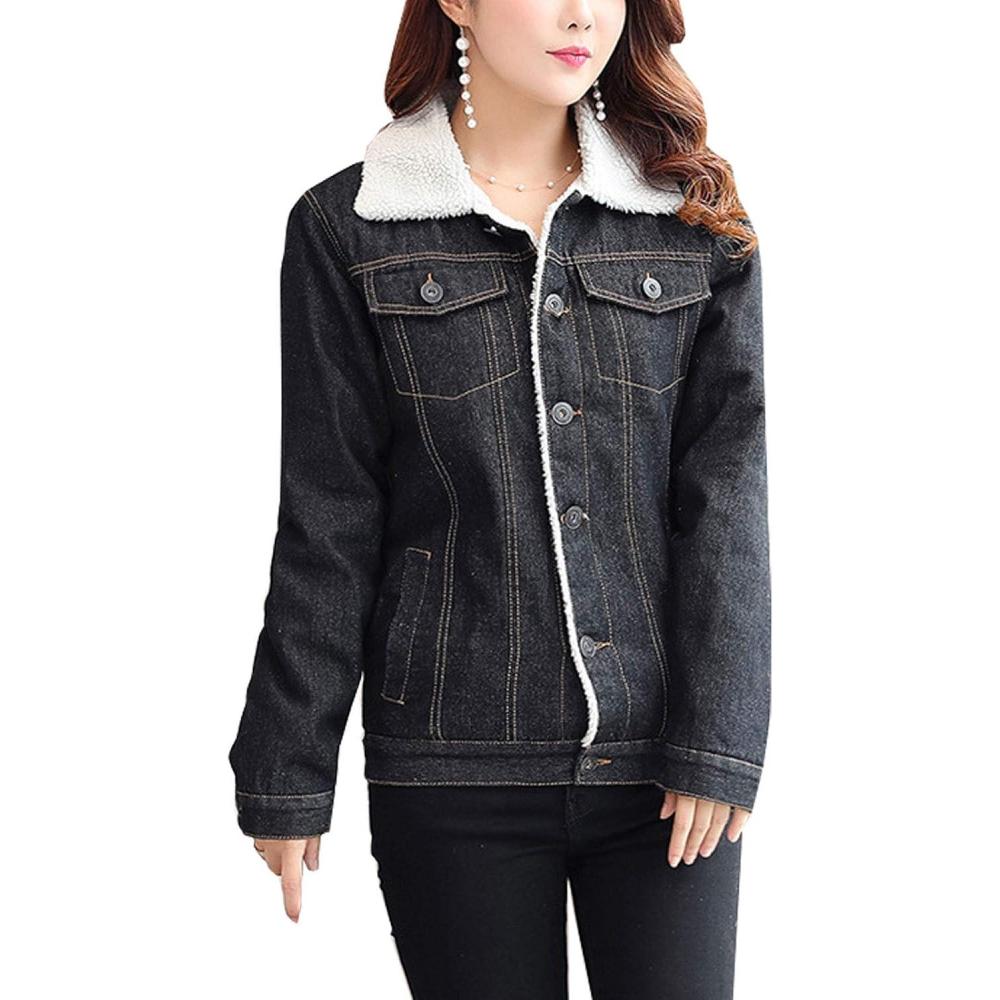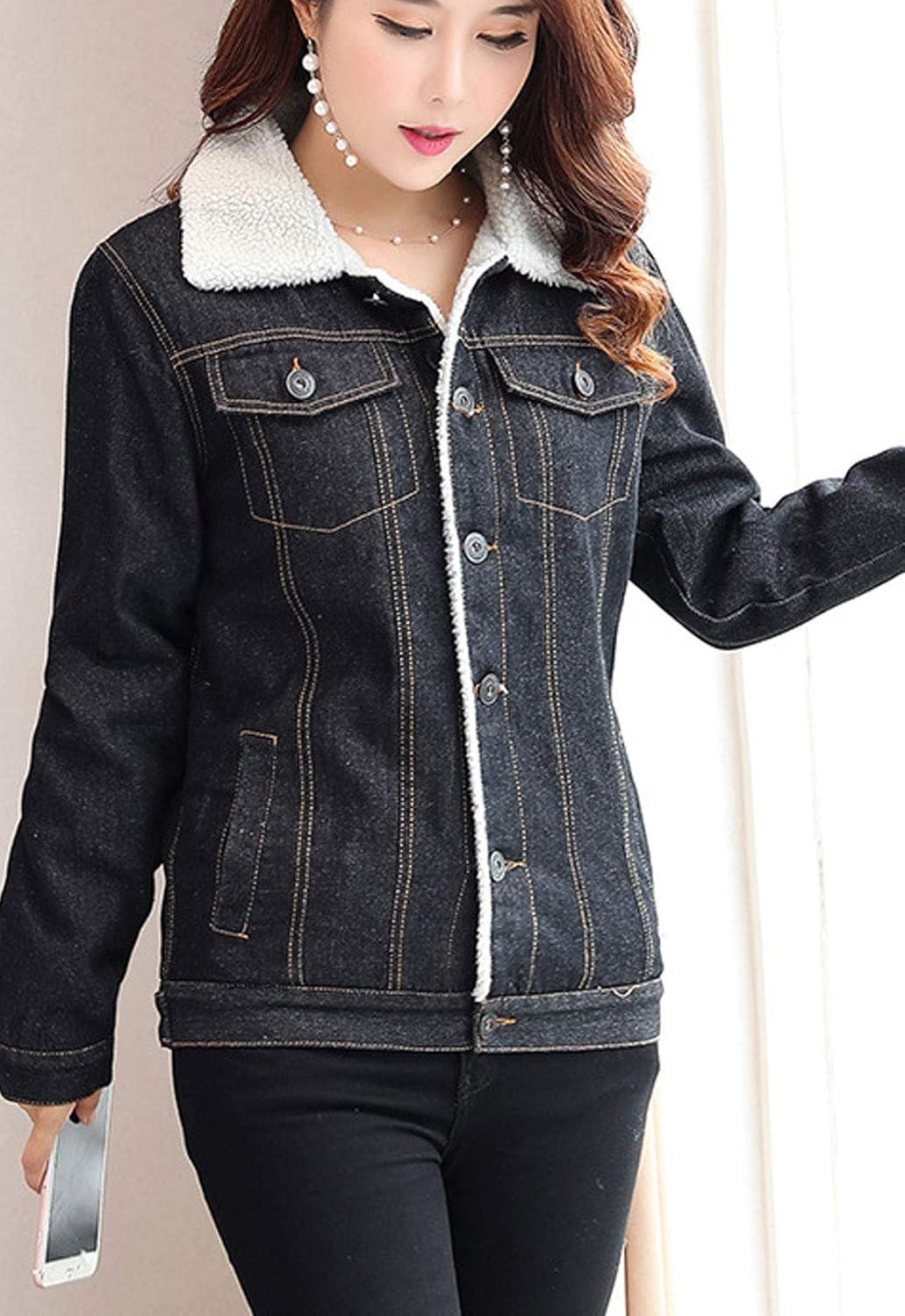 Flygo Women’s Casual Lapel Fleece Sherpa Lined Denim Jean Jacket Trucker Coat(Black)