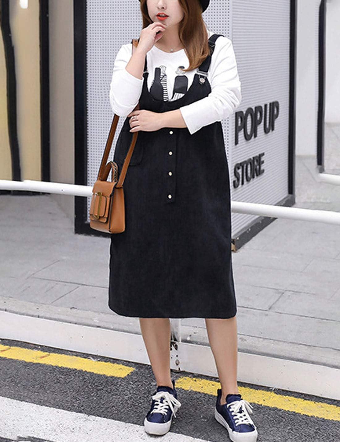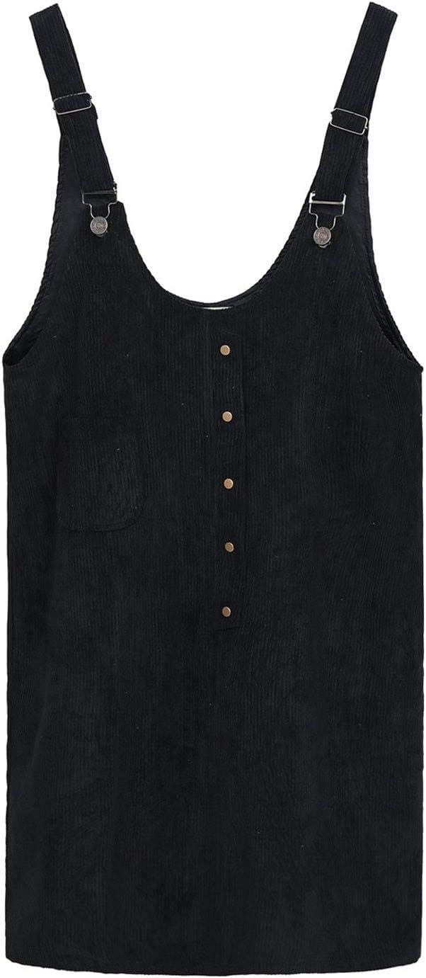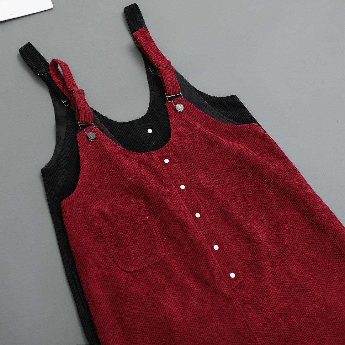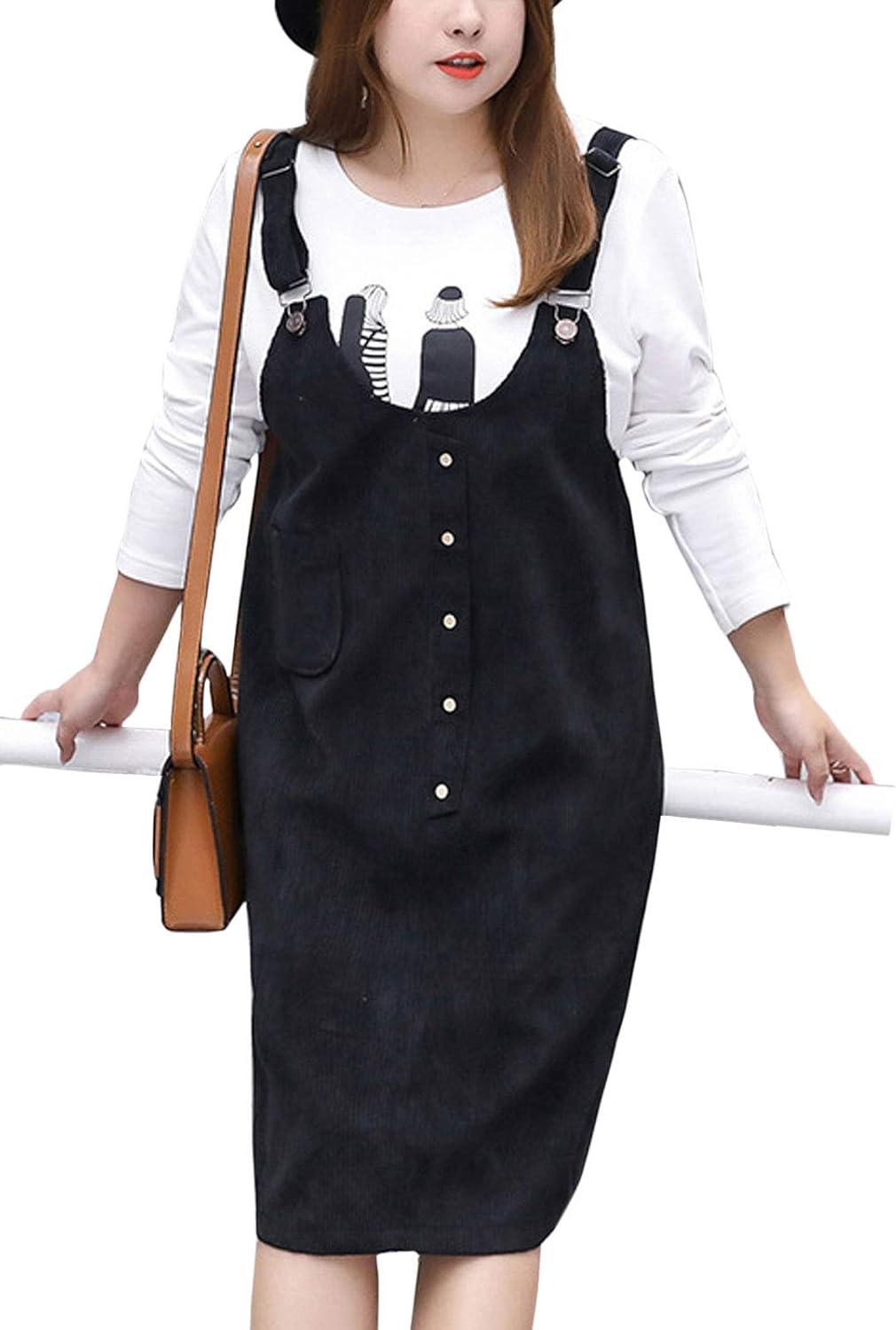 Flygo Womens Retro Relaxed Fit Mid Length Long Corduroy Jumpers Overall Pinafore Dresses Skirts