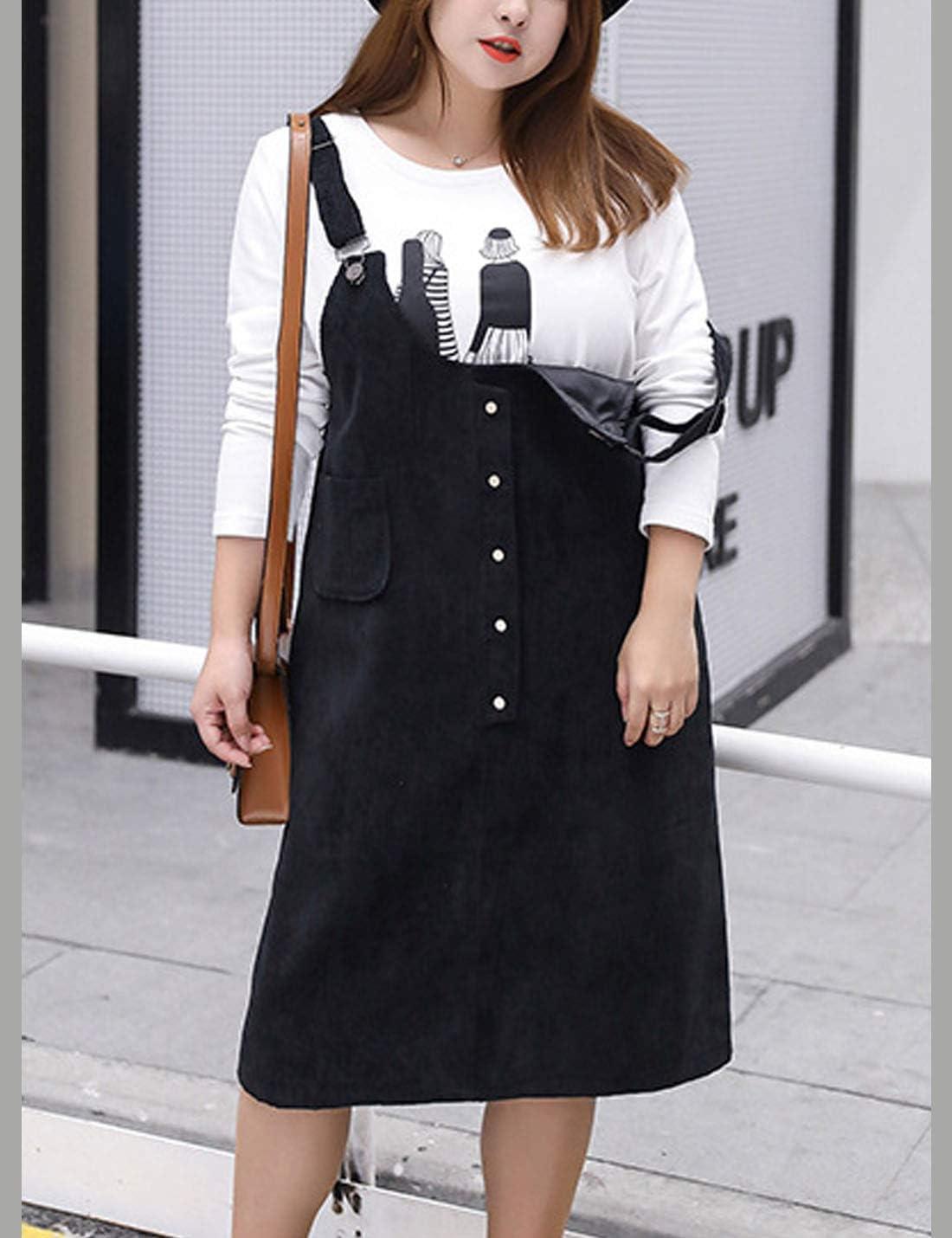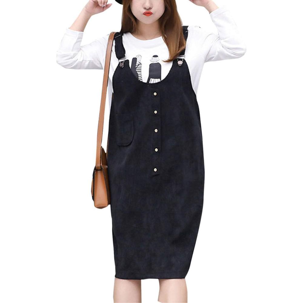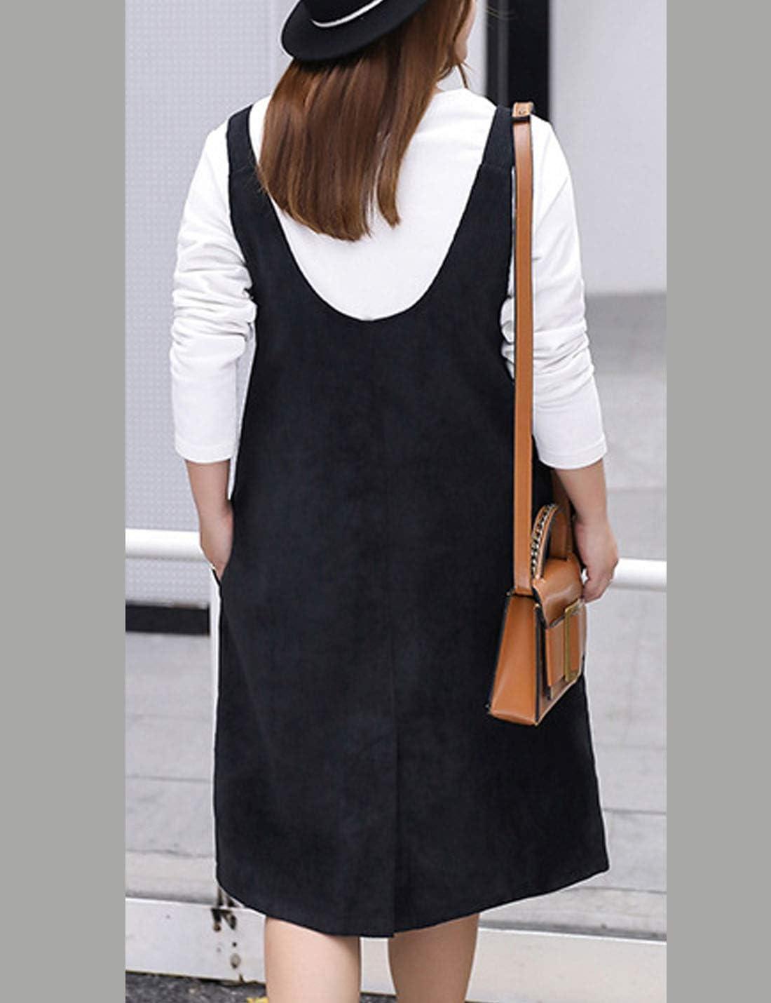 Flygo Women’s Casual Loose Midi Long Corduroy Pinafore Overall Dress Skirt(Black)