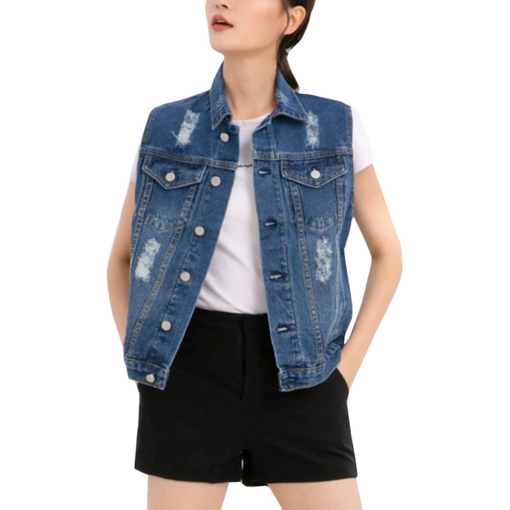 Get up to 70% off on Flygo Womens Casual Plus Size Buttoned Distressed Washed Denim Vest Sleeveless Jean Jacket W Chest Flap Pockets(Ripped Blue) styles during our end-of-season clearance event.