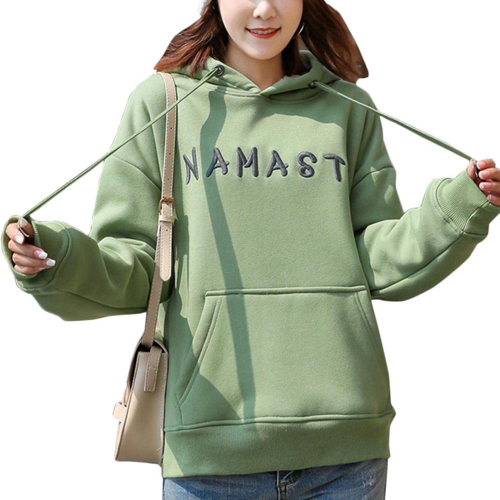 Flygo Women’s Casual Winter Sherpa Fleece Lined Sweatshirt Coat Long Sleeve Pullover Outwear(Green(chest Embroidery))