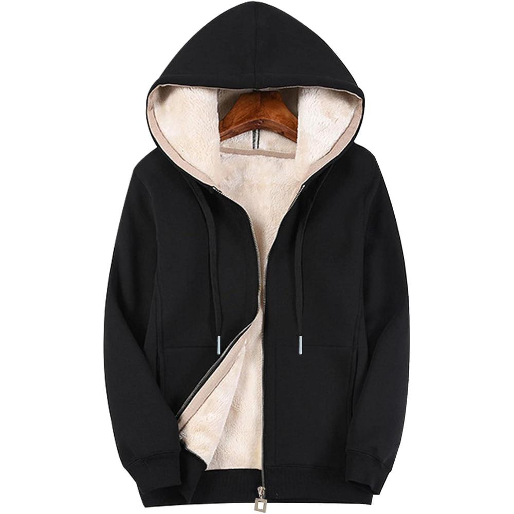 Flygo Women’s Casual Winter Warm Sherpa Lined Zip Up Fleece Hoodie Sweatshirt Jacket Coat(Black)