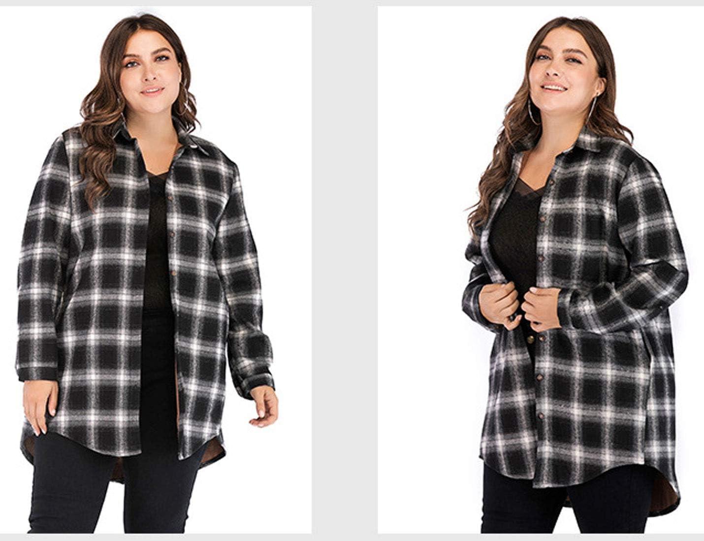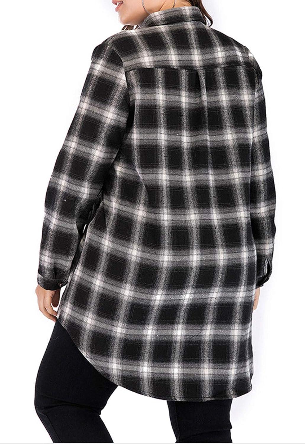 Flygo Women’s Classic Sherpa Lined Button Down Loose Mid Long Plaid Shirt Jacket(Black Plaid)