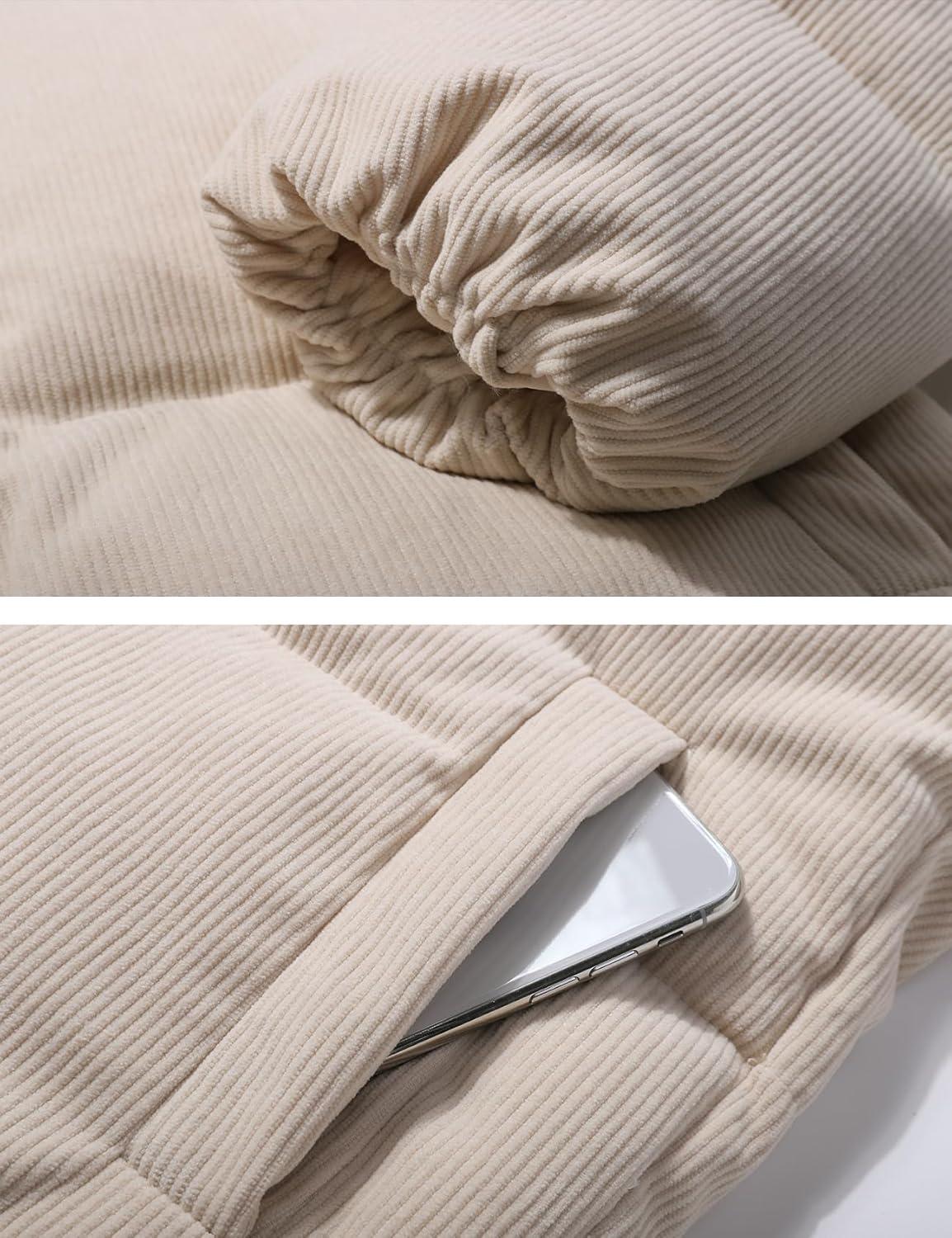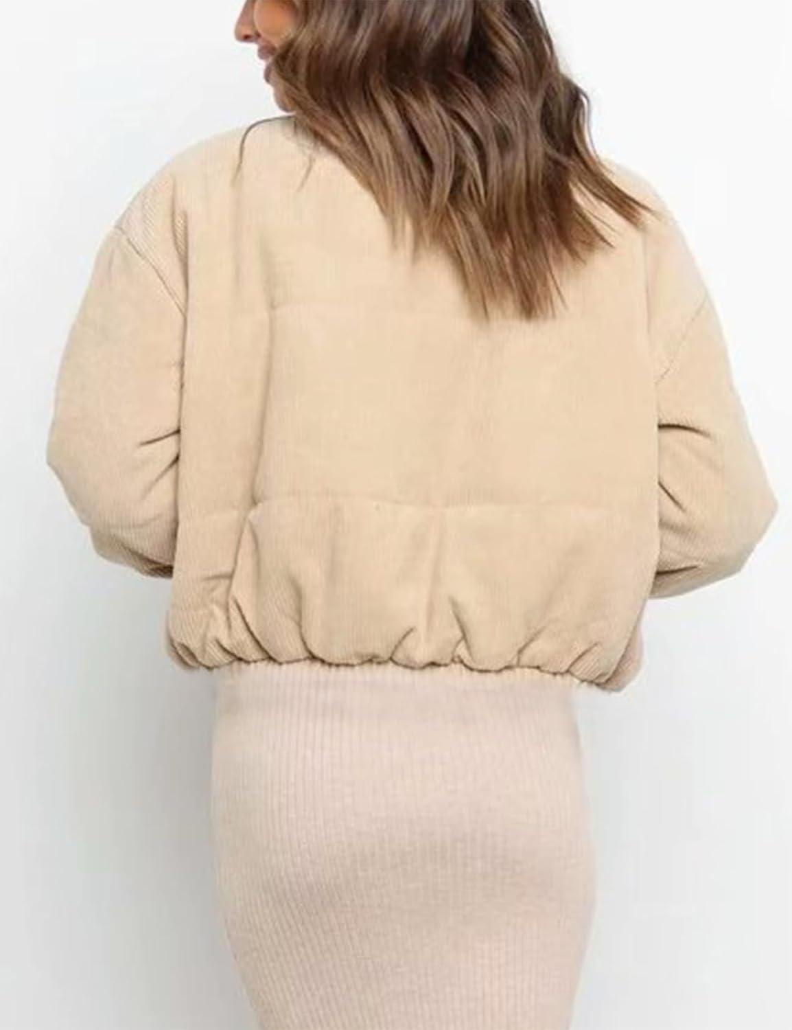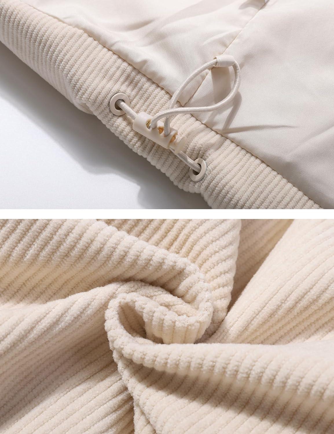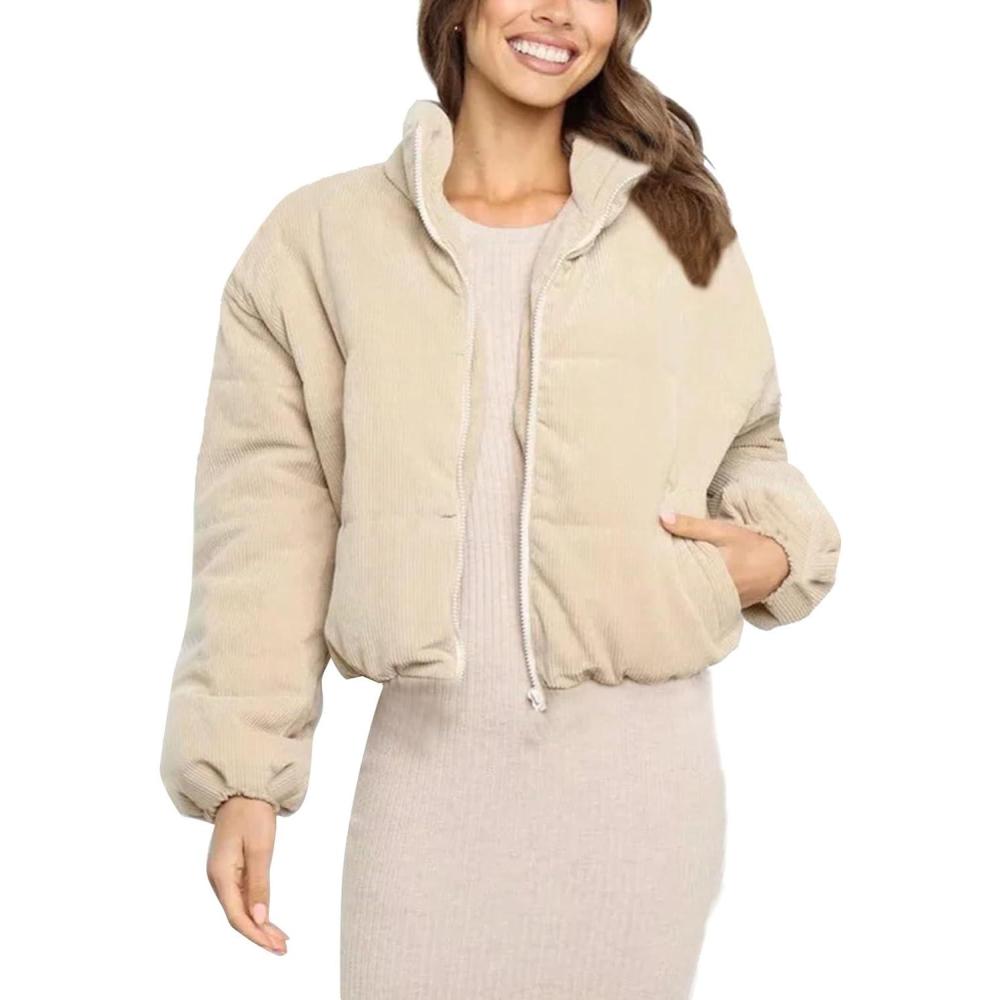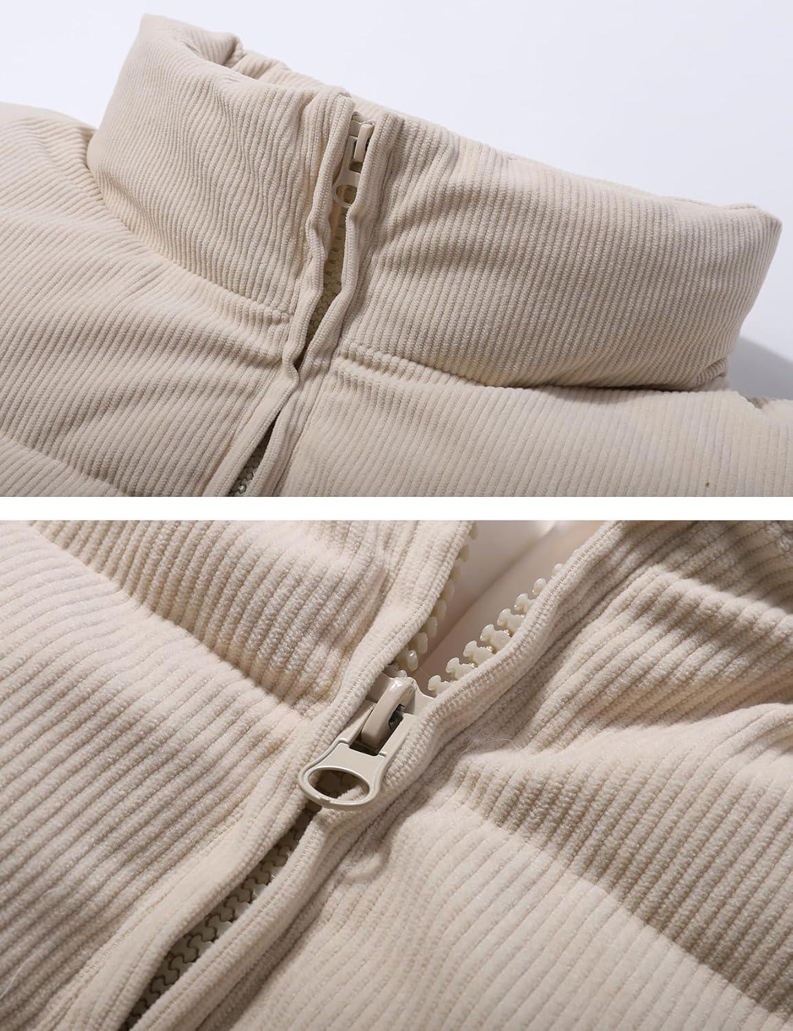 Flygo Women’s Corduroy Jackets Casual Padded Full Zip Stand Collar Puffer Coat(Beige)