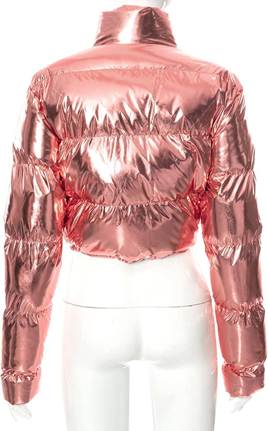 Flygo Women’s Cropped Puffer Jacket-Shiny Waterproof Stand Collar Warm Winter Lightweight Coats(Pink)