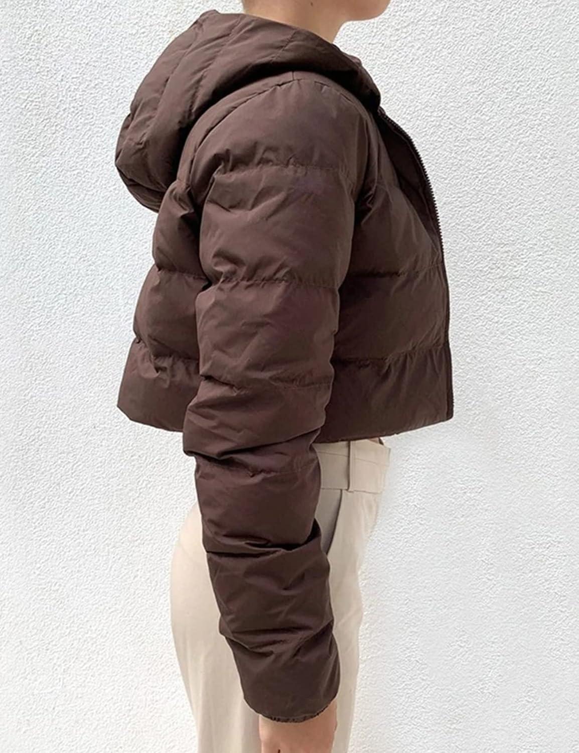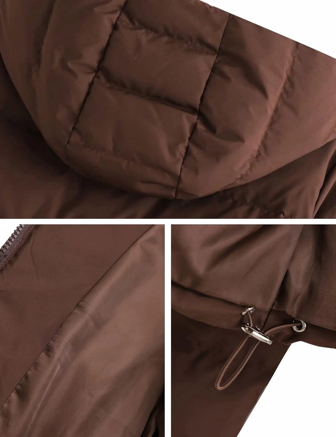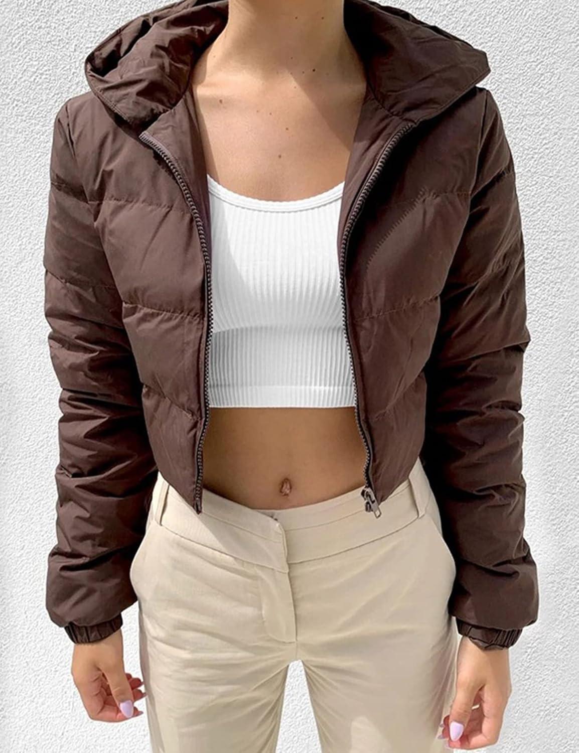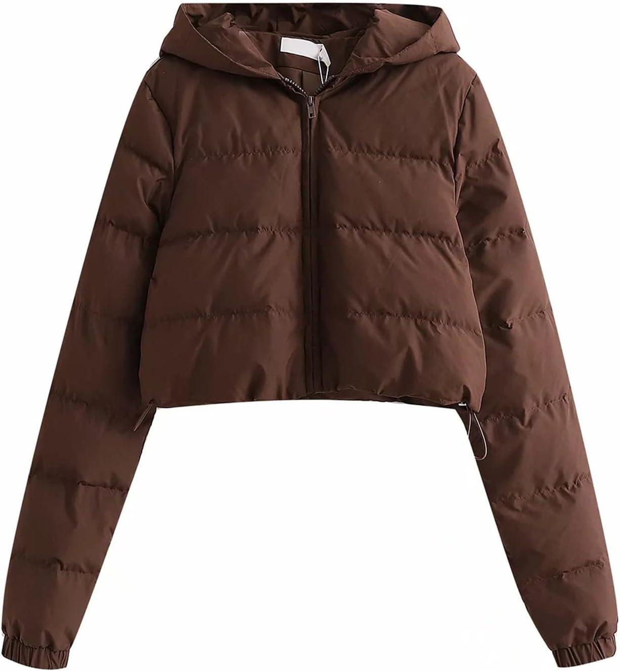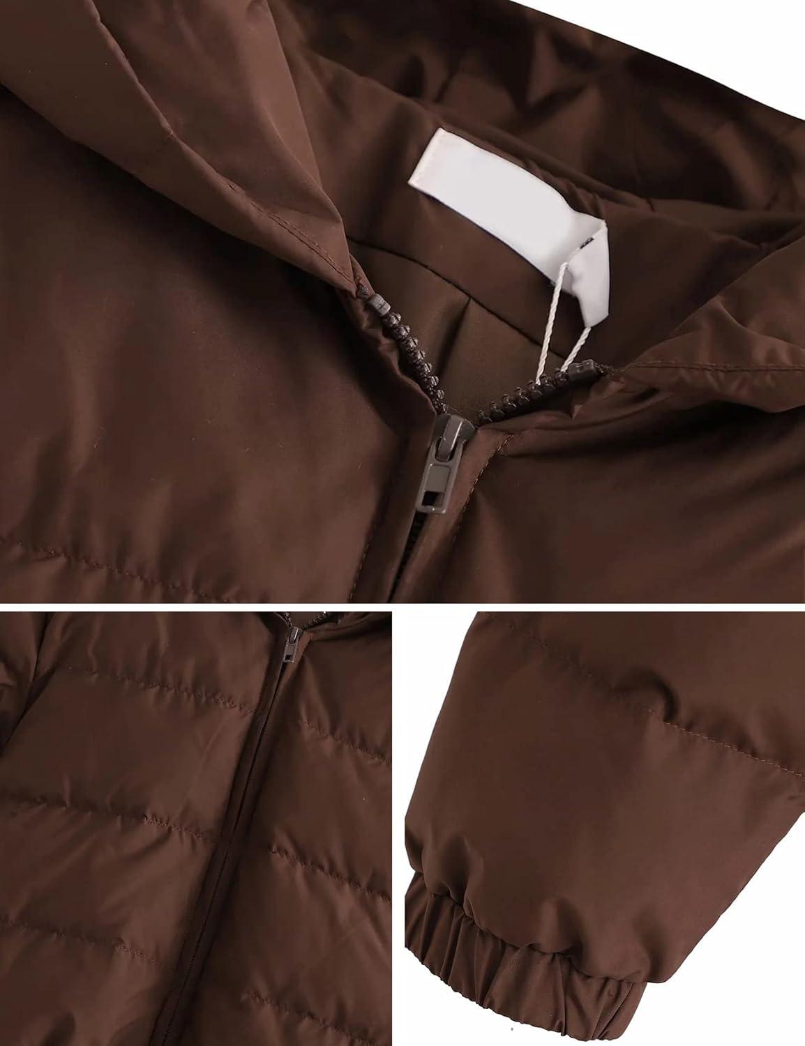 Flygo Women’s Cropped Puffer Jacket Winter Padded Zip Up Hooded Puffy Bubble Coat(Coffee)