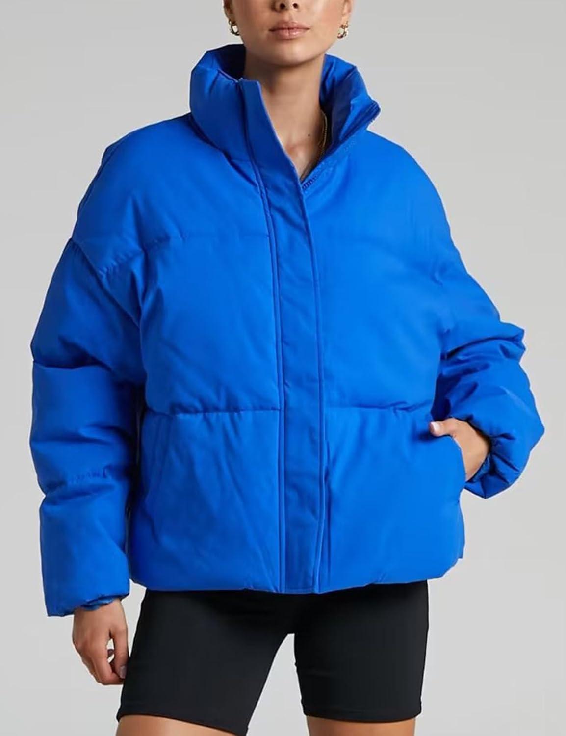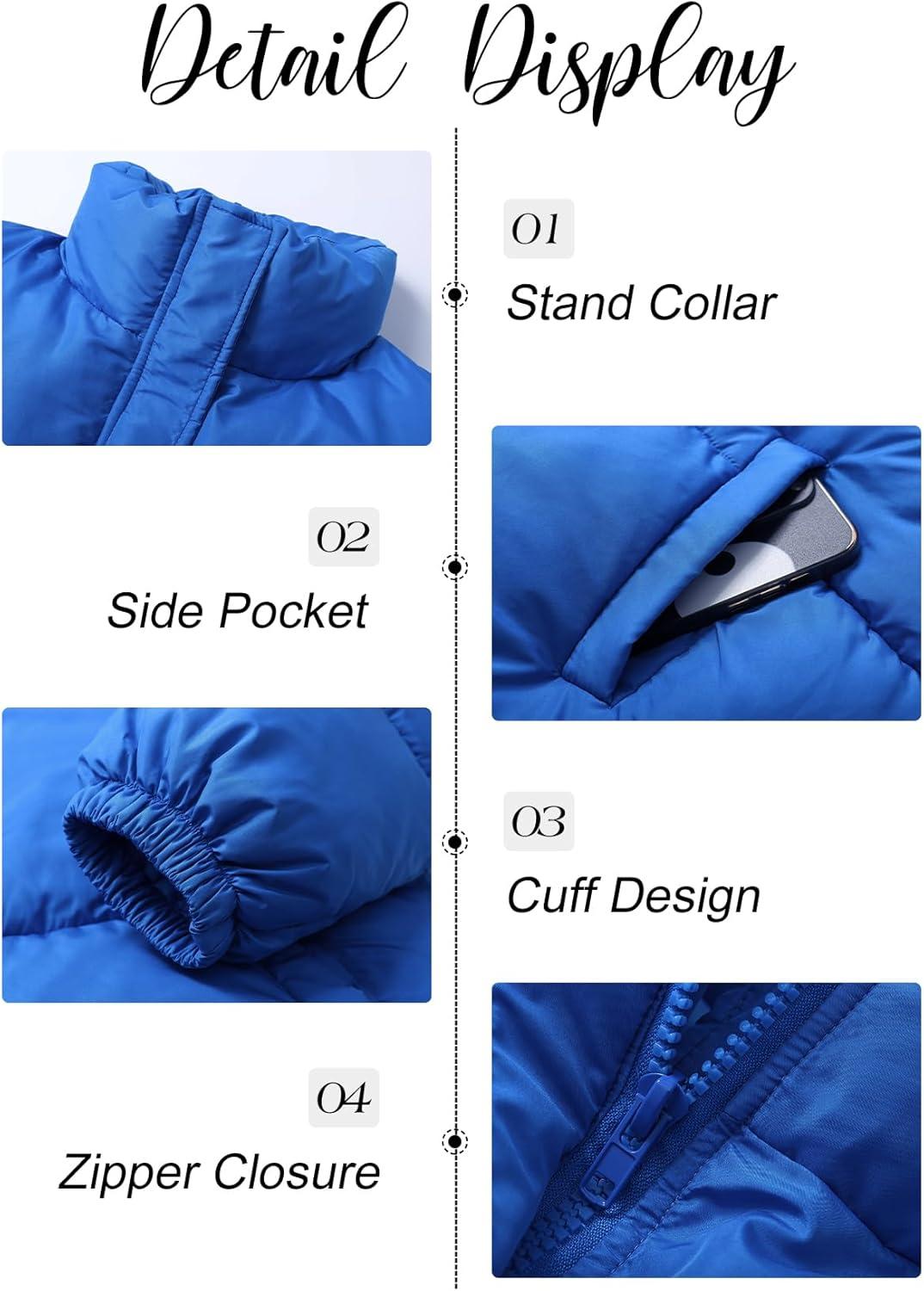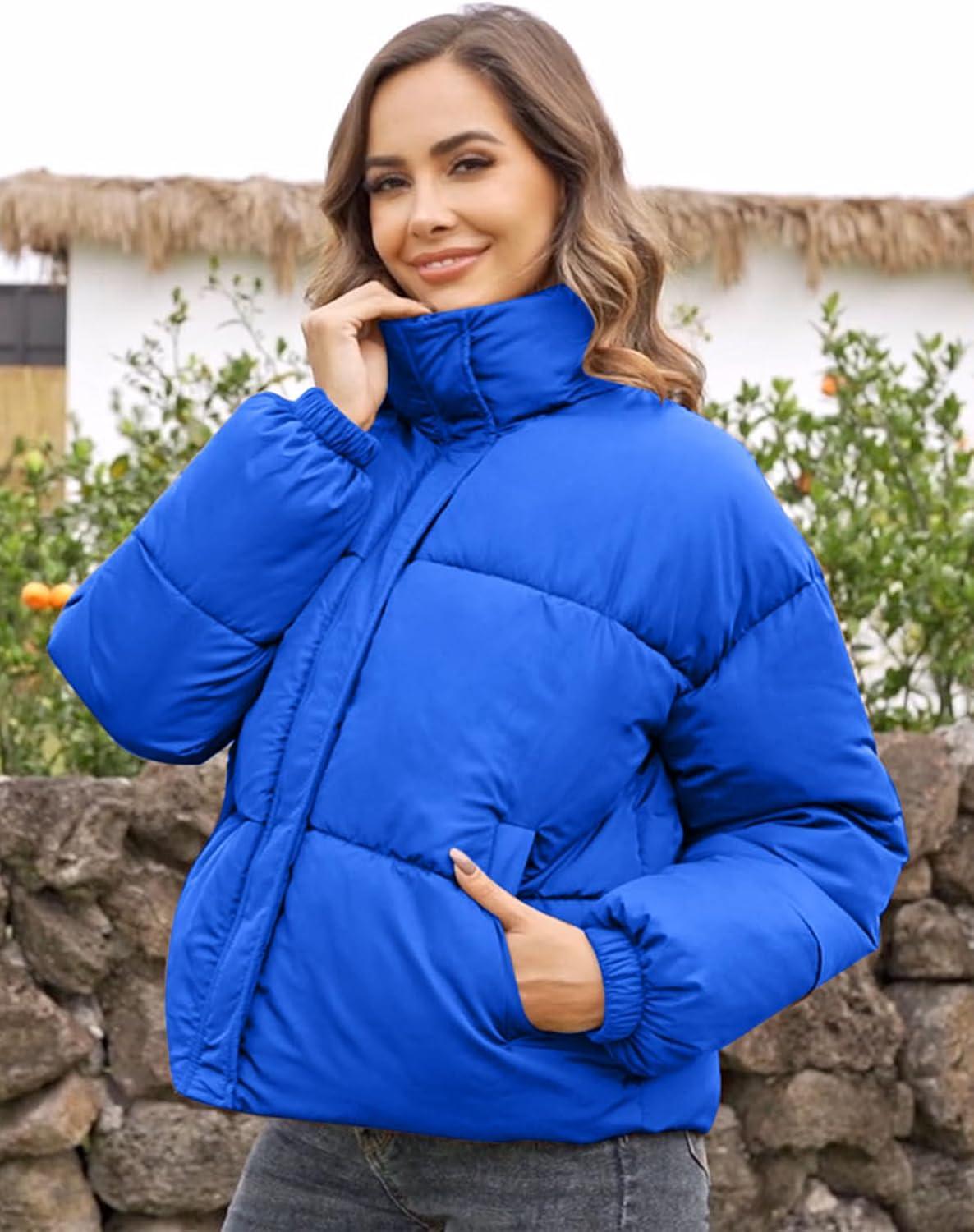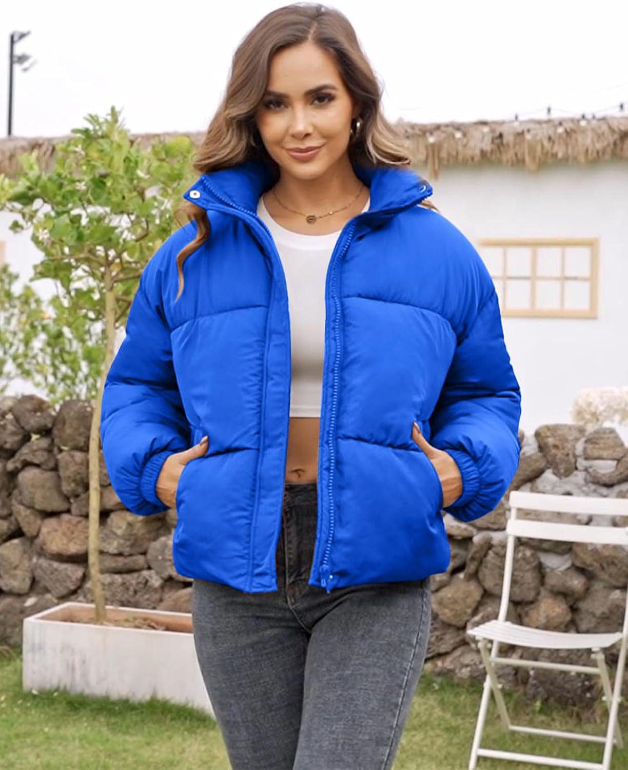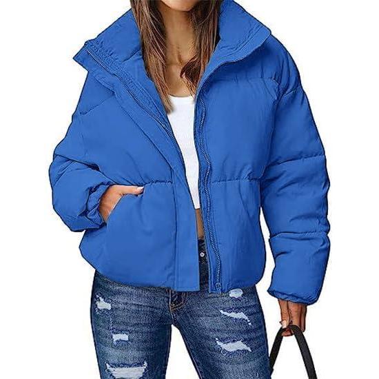 Flygo Womens Cropped Puffer Jacket Zip Up Stand Collar Lightweight Quilted Padded Down Winter Warm Jackets Coats with Pockets(Blue)